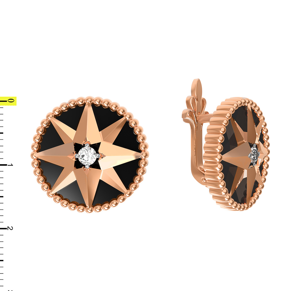 Серьги из золота c фианитом и ониксом