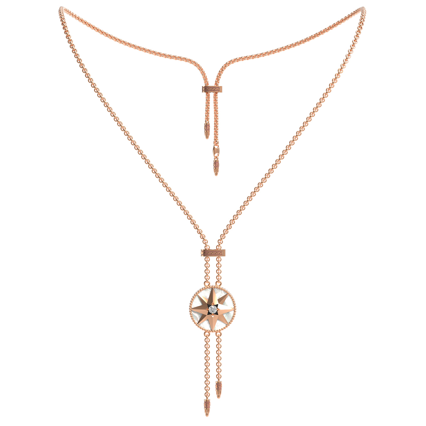 Колье из золота c фианитом, ониксом и перламутром