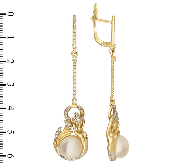 Серьги из лимонного золота c бриллиантами и жемчугом