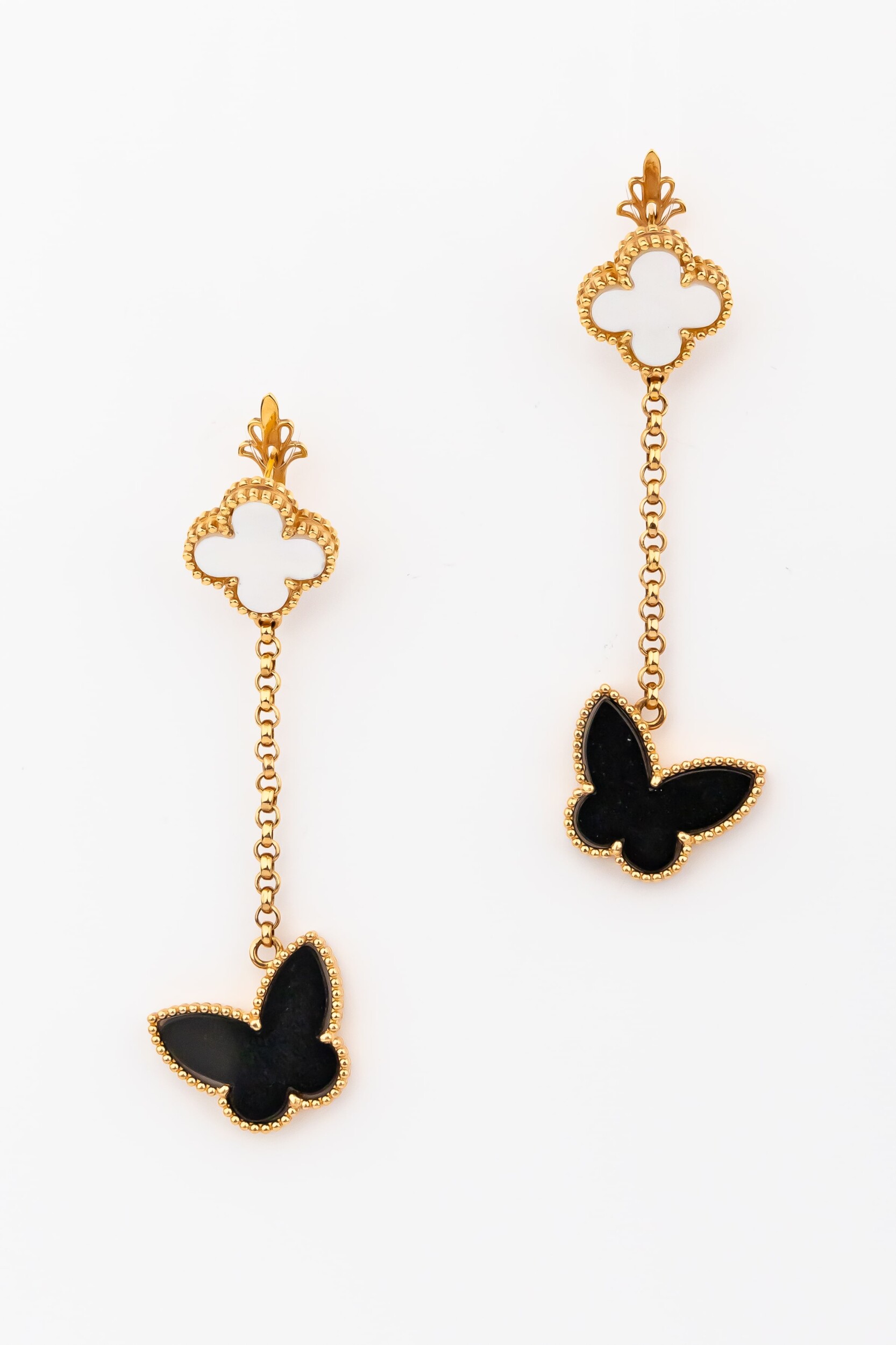 Серьги из золота c ониксом и перламутром