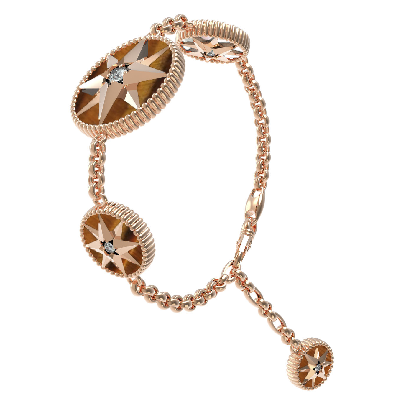 Браслет из золота c фианитом, тигровым глазом и перламутром