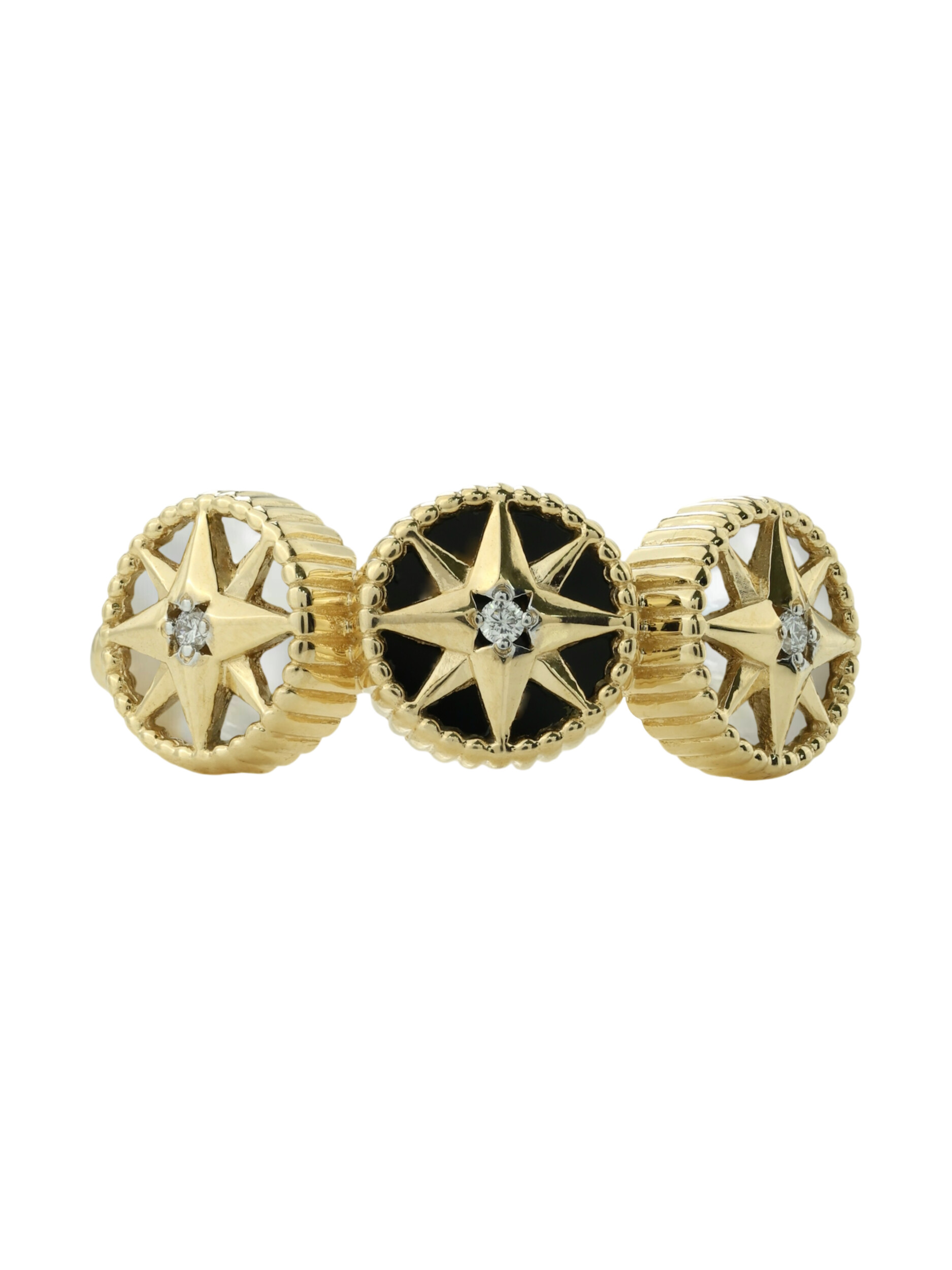 Кольцо из лимонного золота c бриллиантами, ониксом и перламутром