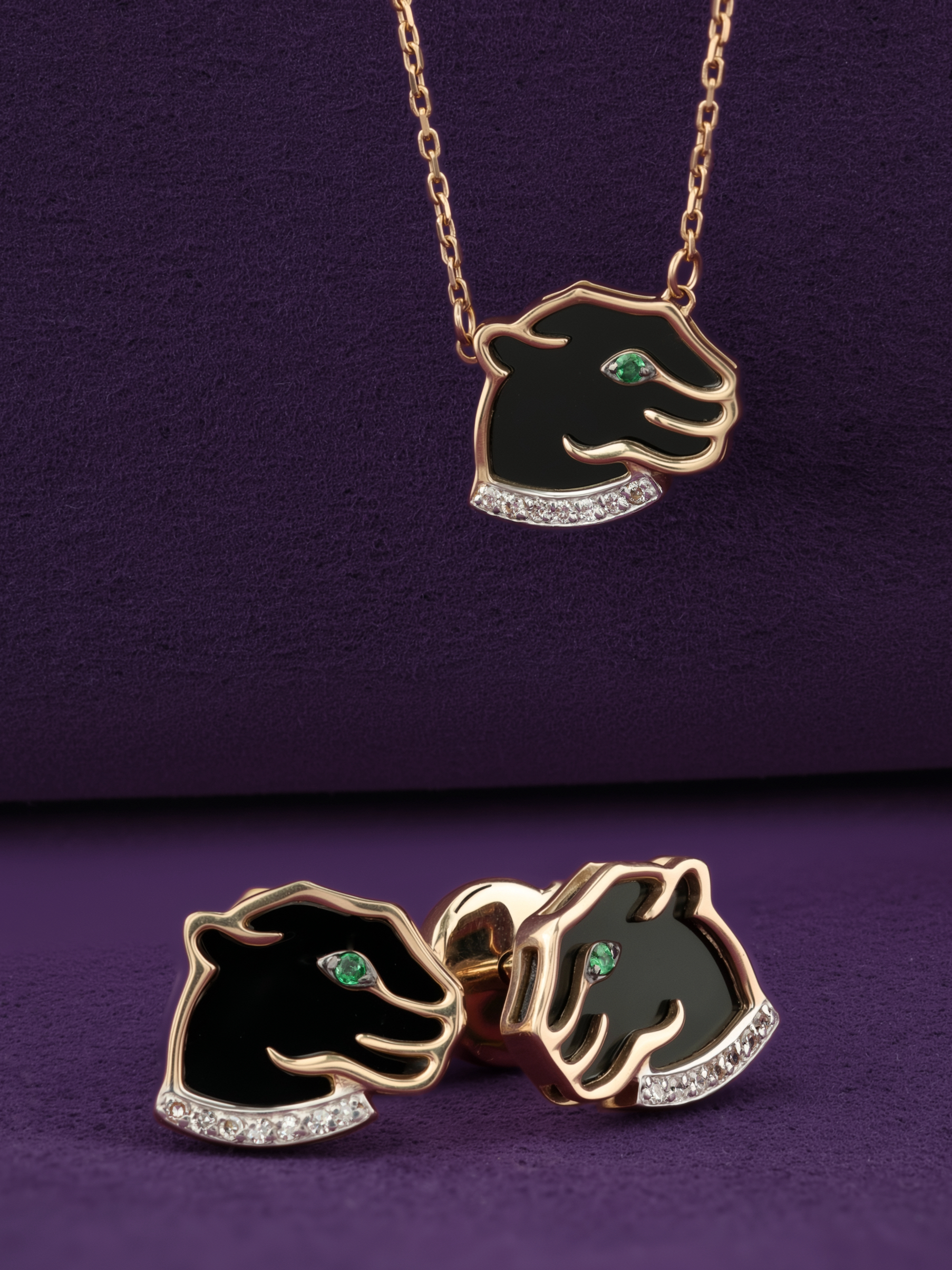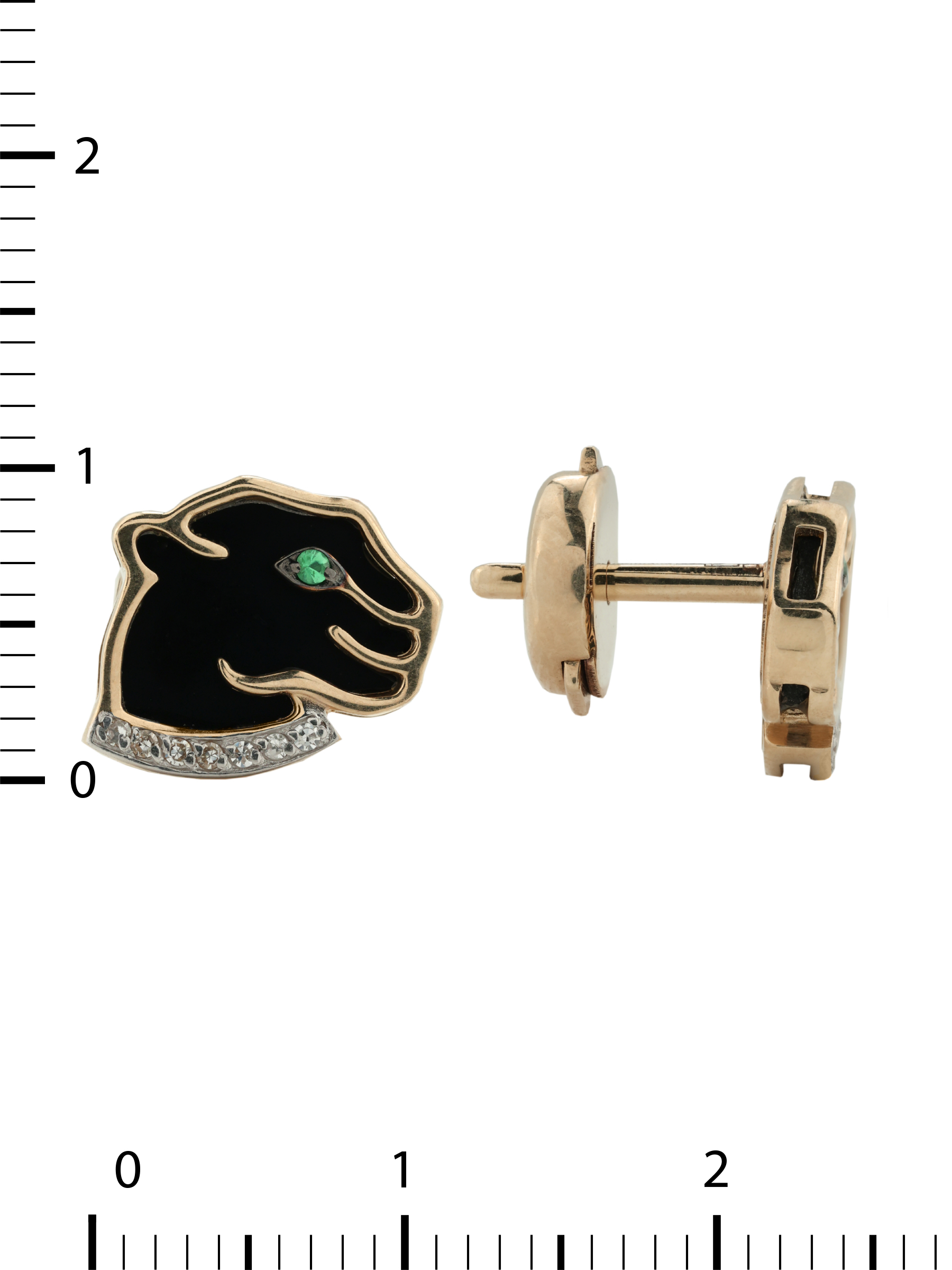 Серьги из золота c бриллиантами, изумрудом и ониксом