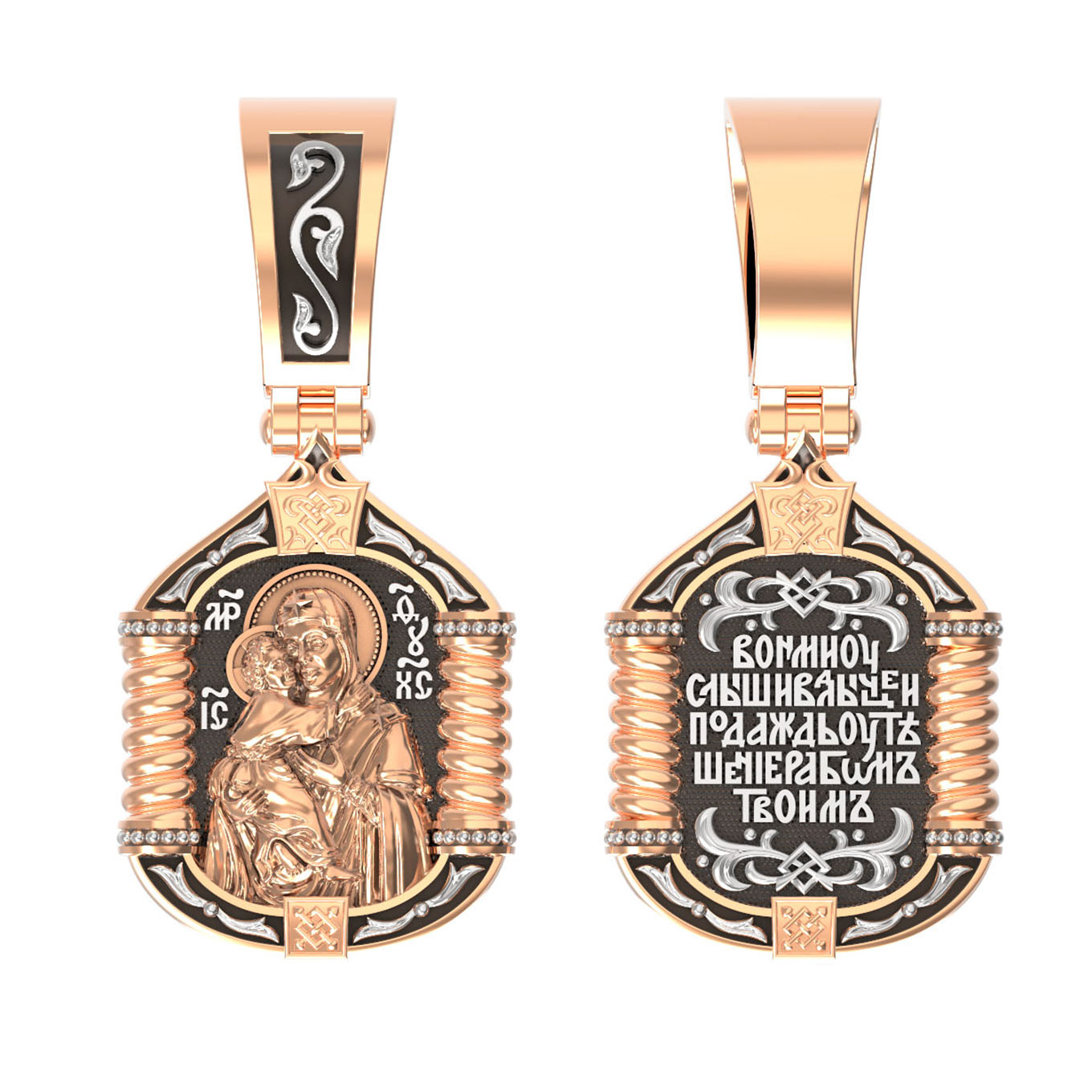 На лицевой стороне образка изображена Владимирская икона Божией Матери.
