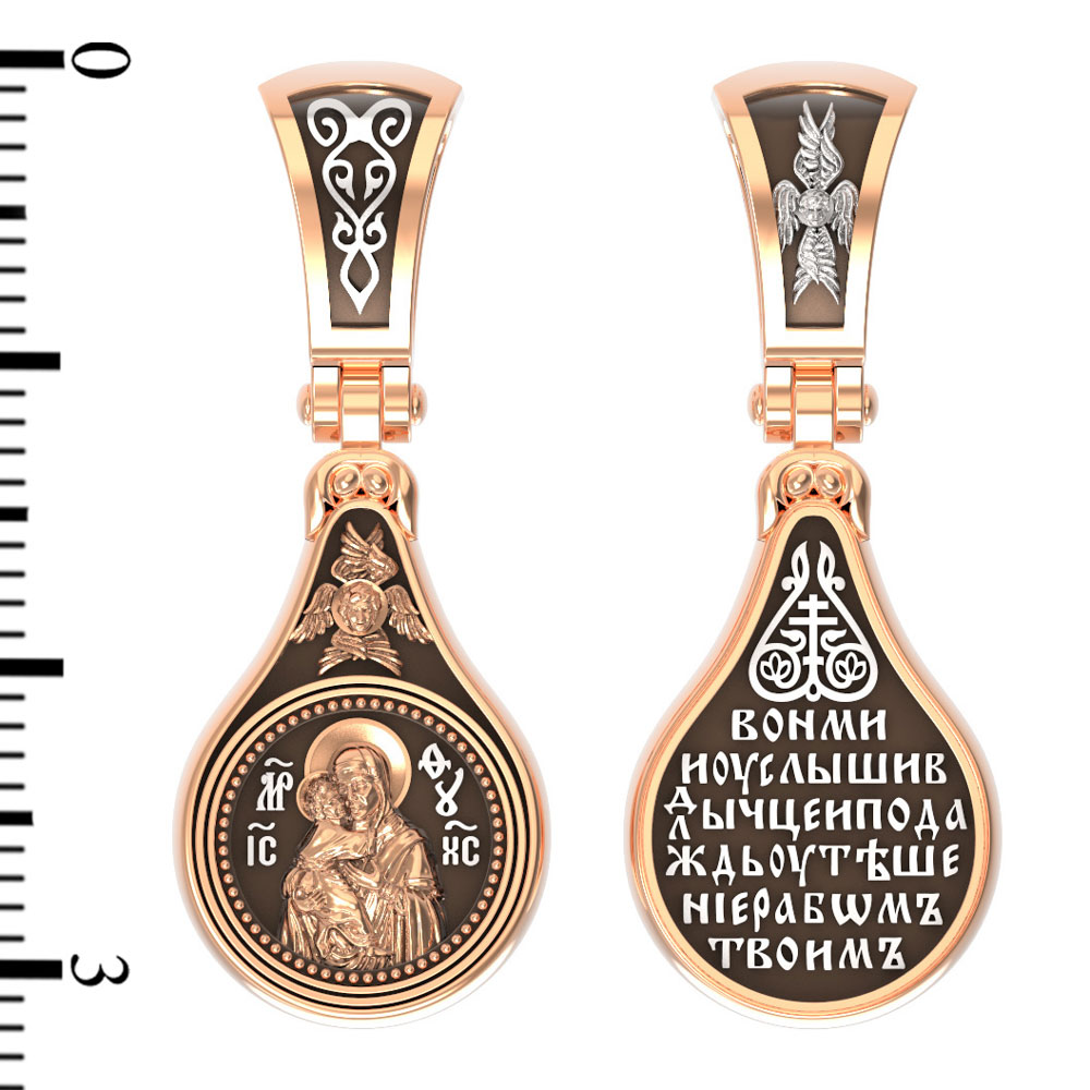 На лицевой стороне образка изображена Владимирская икона Божией Матери.