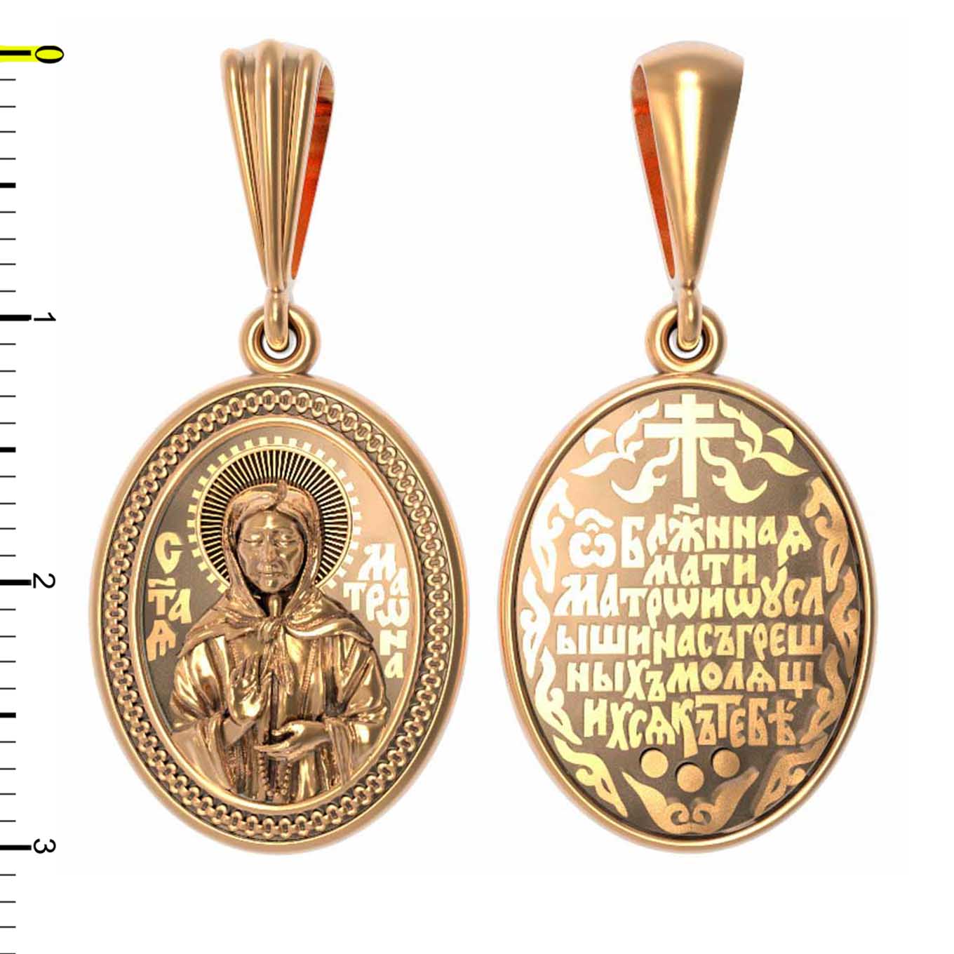 На обороте образка написана молитва: «О блаженная мати Матроно, услыши насгрешных, молящихся к Тебе».