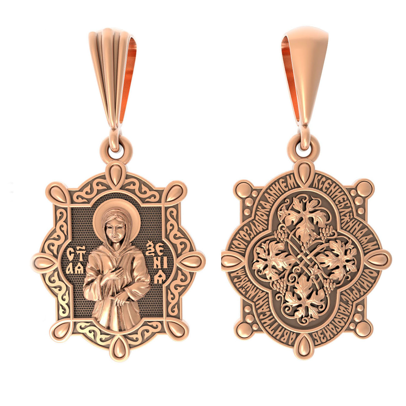 На лицевой стороне образка изображена Святая блаженная Ксения Петербургская, в миру Ксения Григорьевна Петрова.