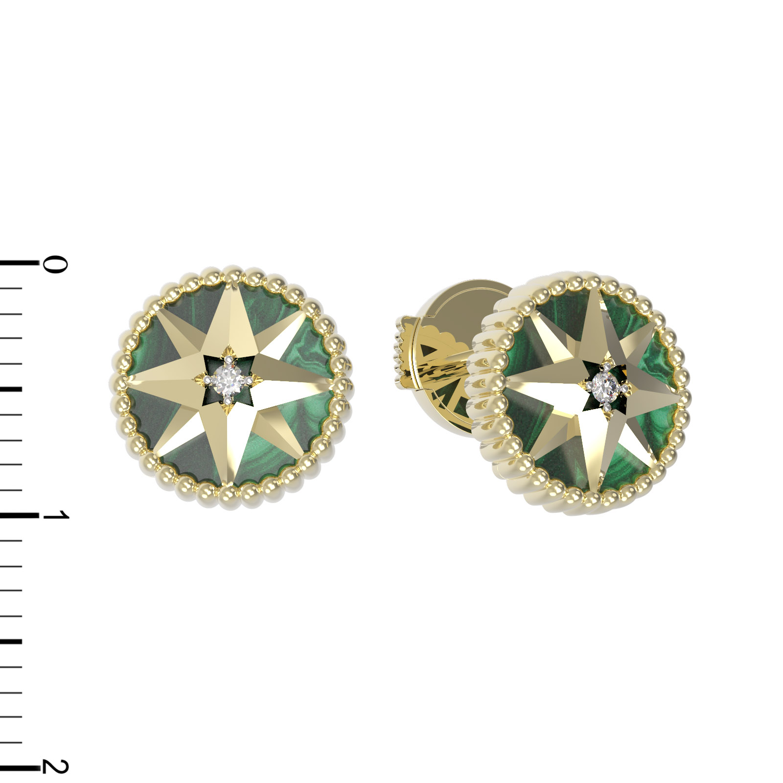 Серьги из лимонного золота c фианитом и малахитом