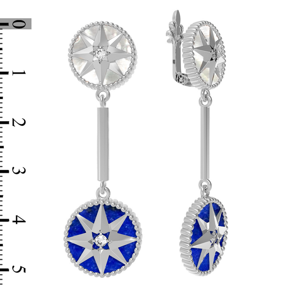 Серьги из белого золота c фианитом, лазуритом и перламутром