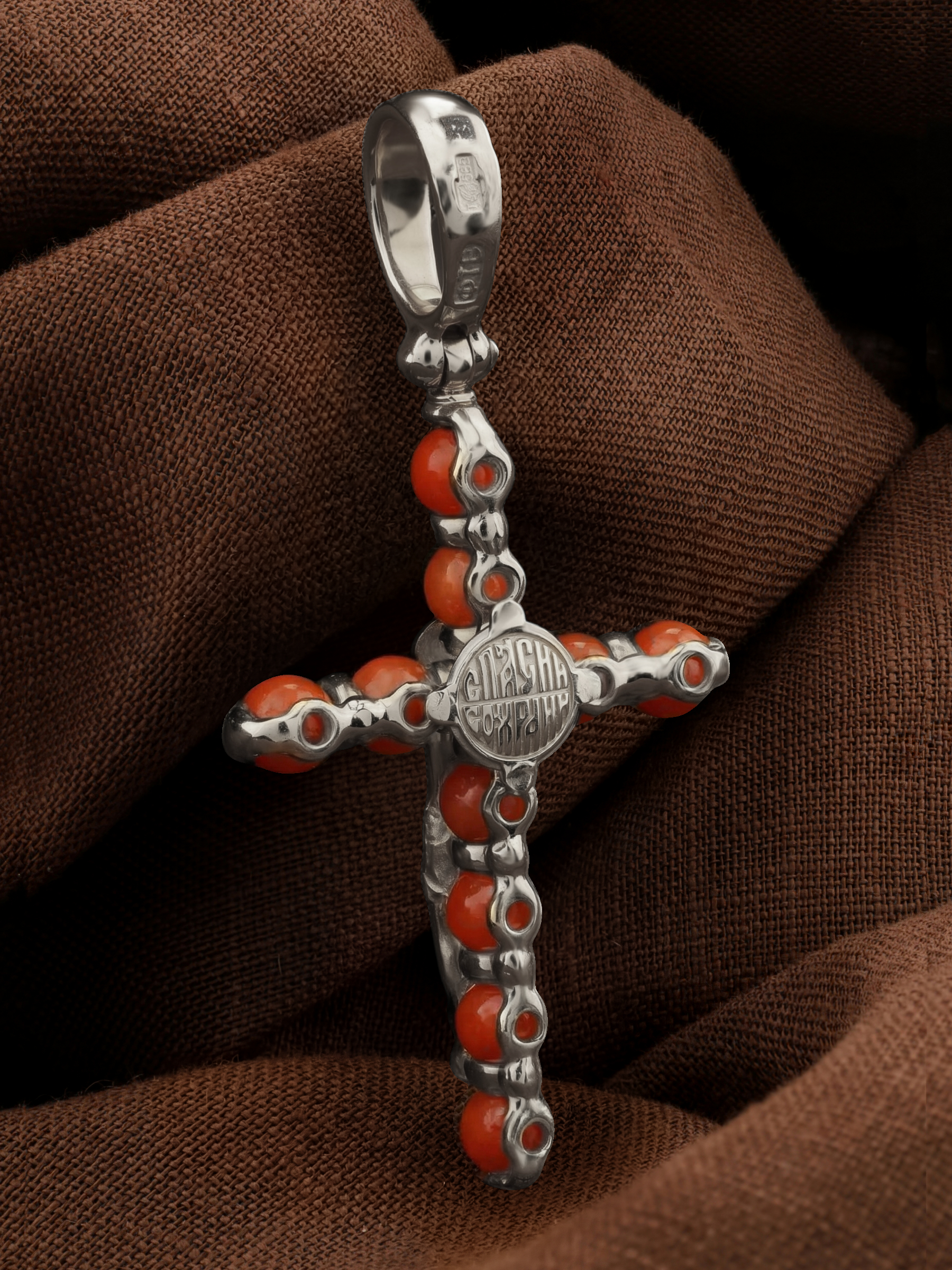 В центрально части оборотной стороны креста написана молитва: «Спаси и сохрани».