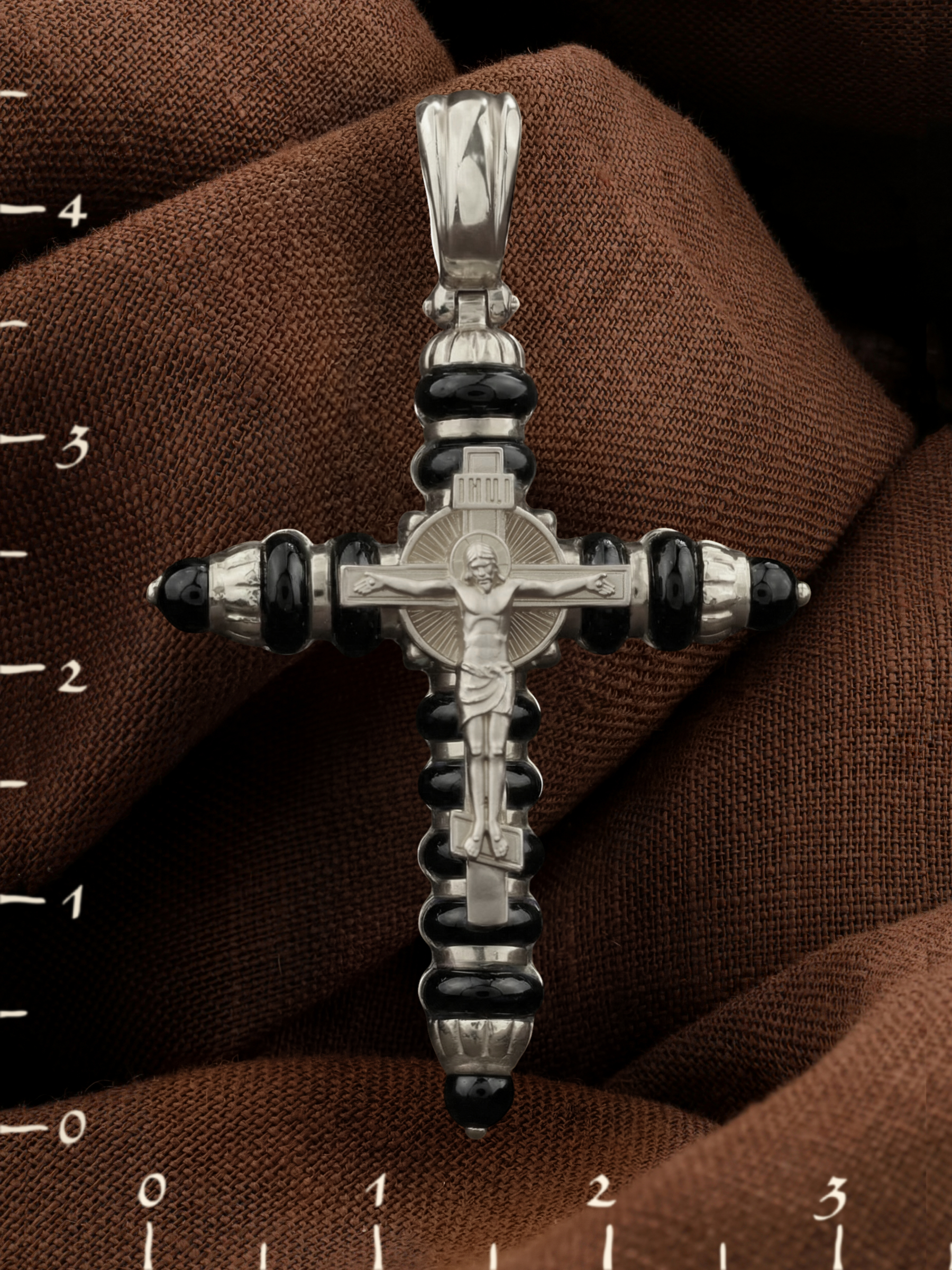 Крест из белого золота c ониксом