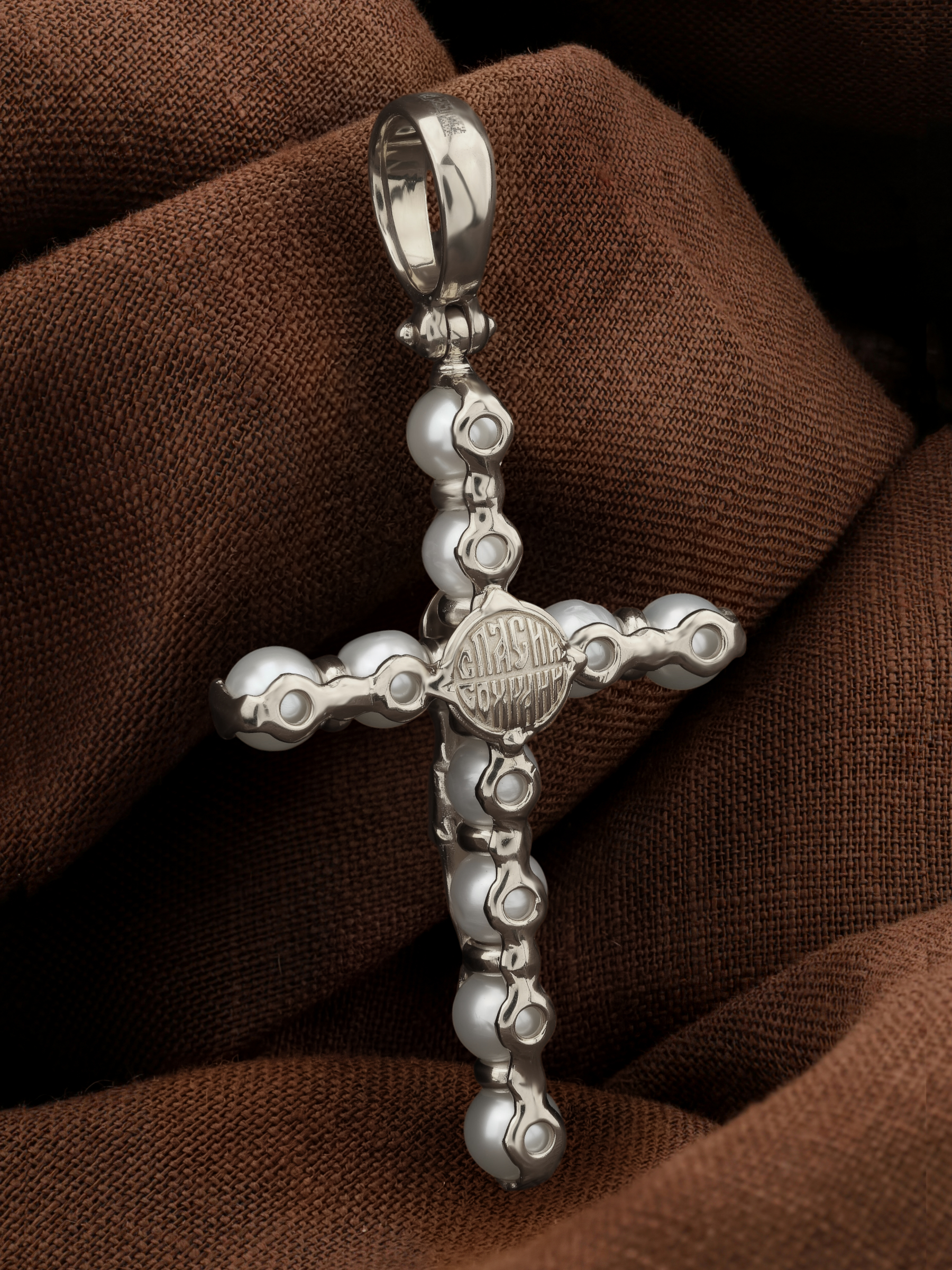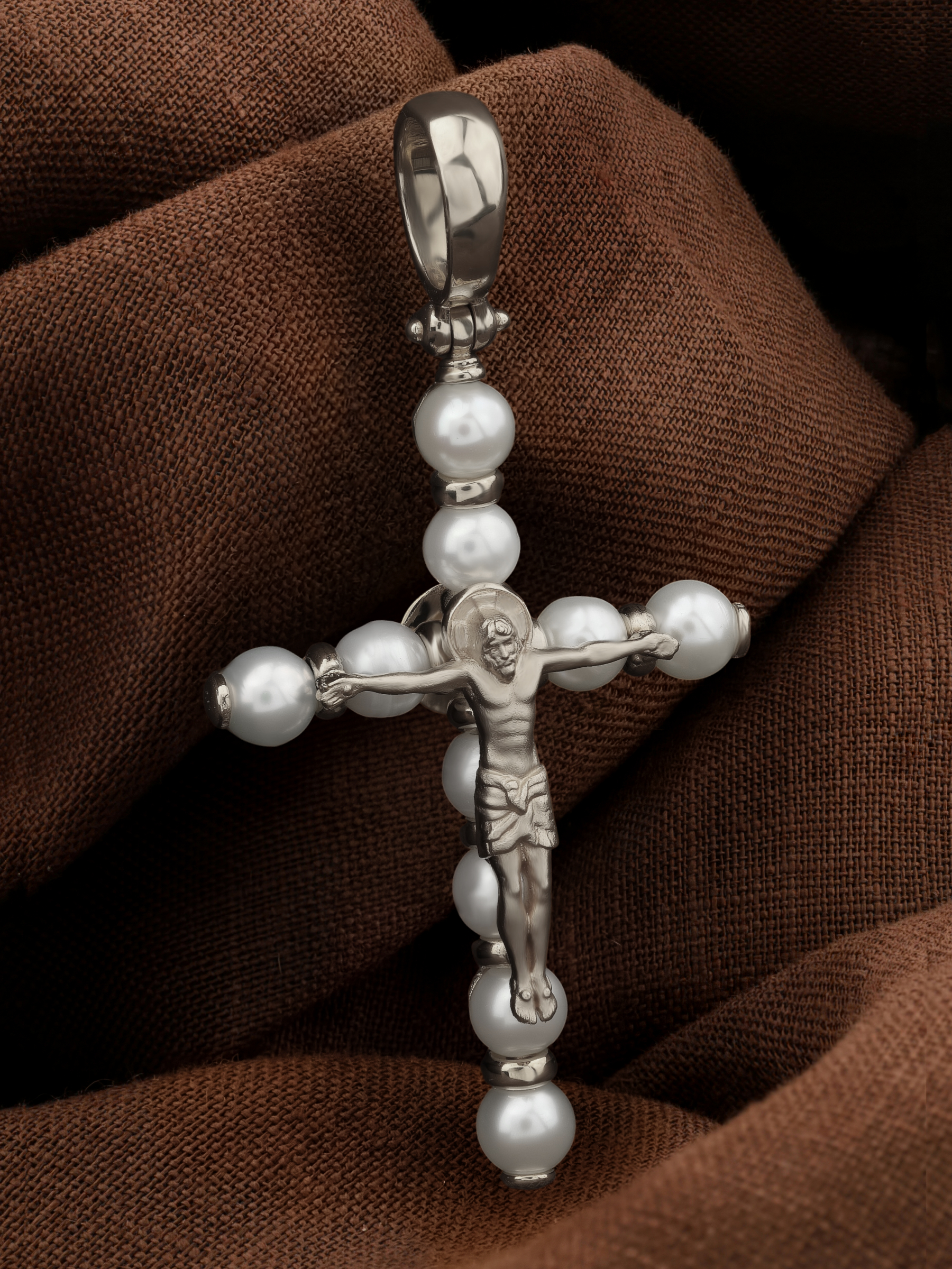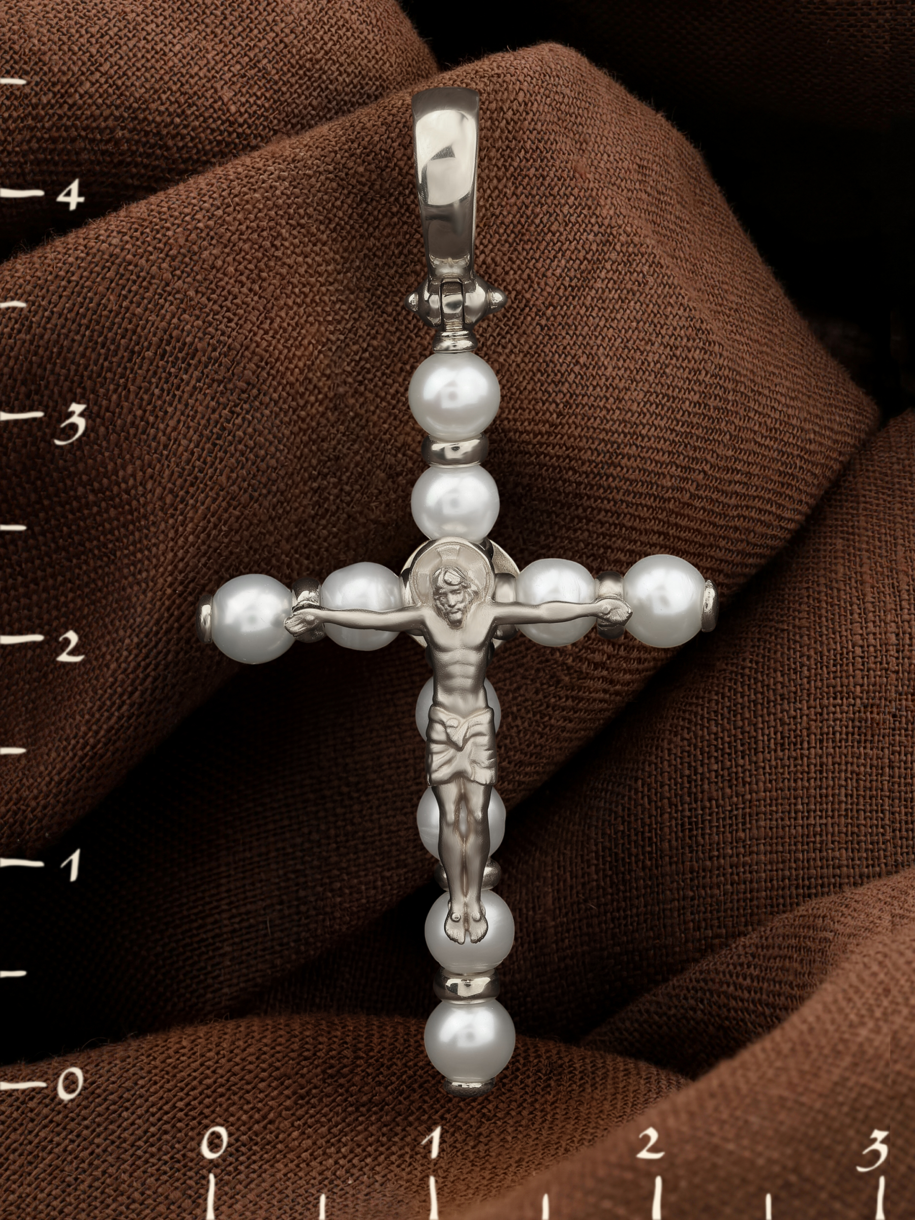 Крест из белого золота c жемчугом