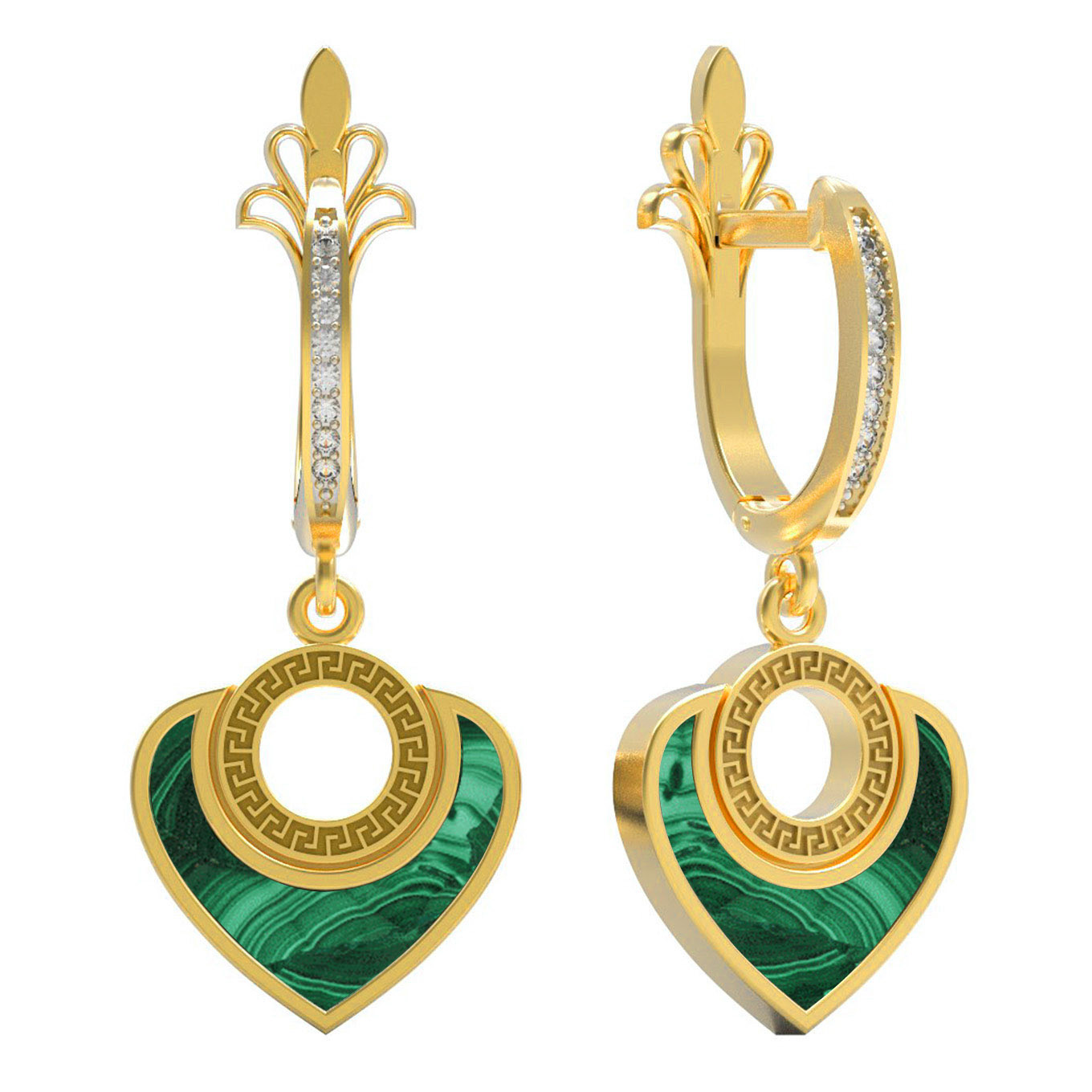 Подвеска из лимонного золота c фианитом, малахитом и перламутром