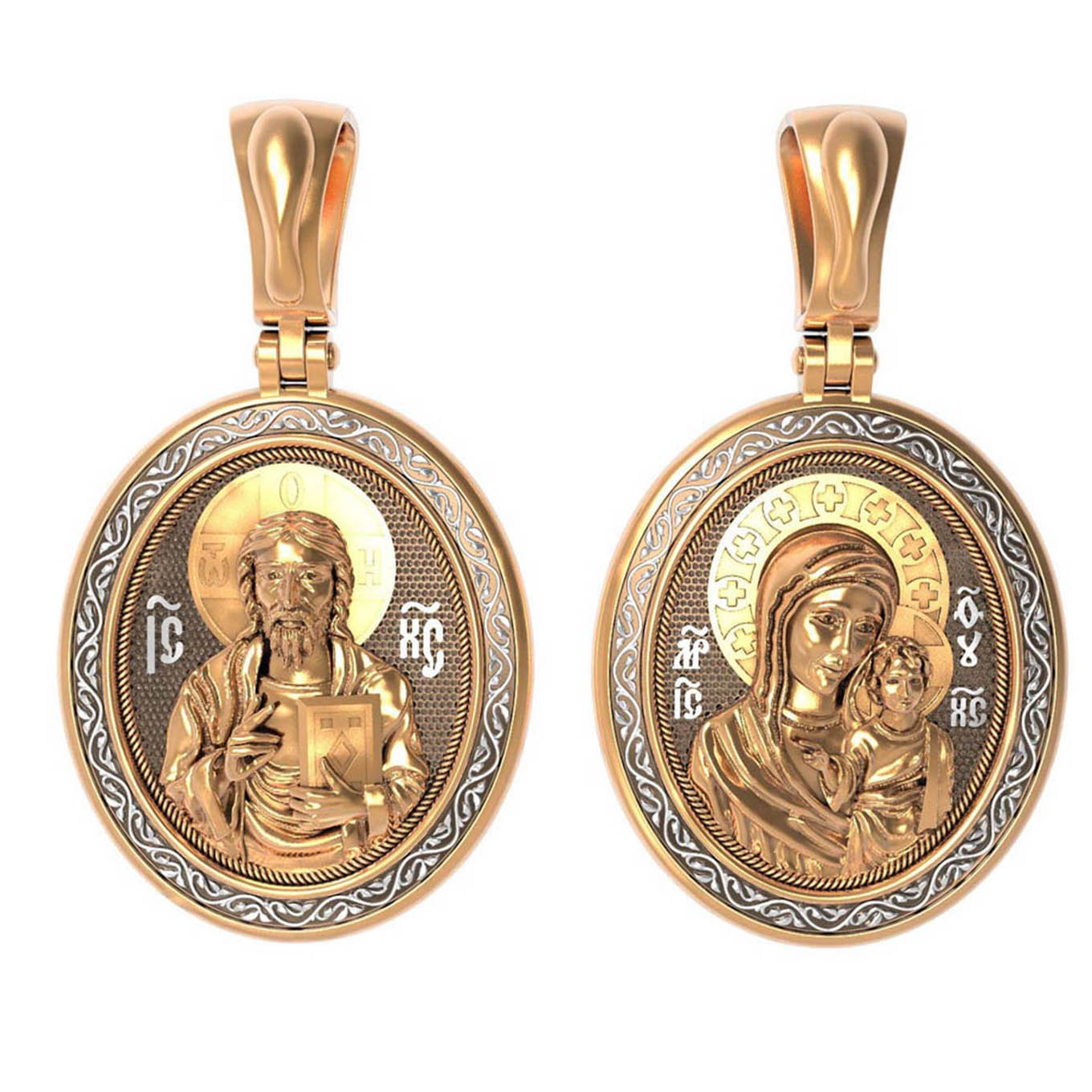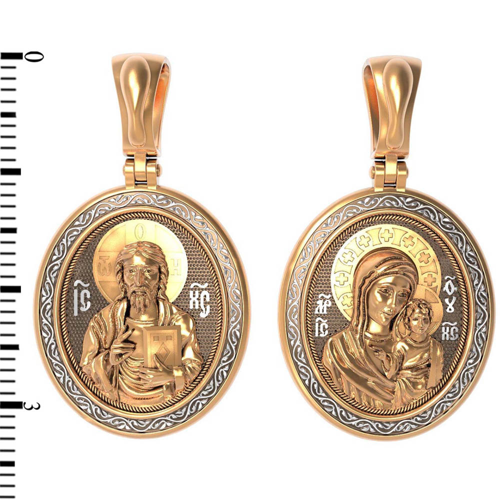 На обороте изображена Казанская икона Божией Матери — одна из самых почитаемых в России чудотворных икон Богородицы. Богословское значение Казанской иконы — указать верующим истинный Путь к спасению, который лежит через Христа. Только Божия Матерь имеет настолько сильное дерзновение к Спасителю, что может ходатайствовать перед Ним за всех верных. Именно этот образ дарится новой повенчанной паре, как хранитель очага и семейная реликвия. Молитва перед Казанской иконой Божьей Матери помогает во всех сложных случаях жизни, в болезнях, во всех печалях, невзгодах, скорбях. Уникальная история появления, чудеса, случившиеся по молитвам православных людей возле образа — все это делает Казанскую Богородицу особенной, среди тысяч других икон.