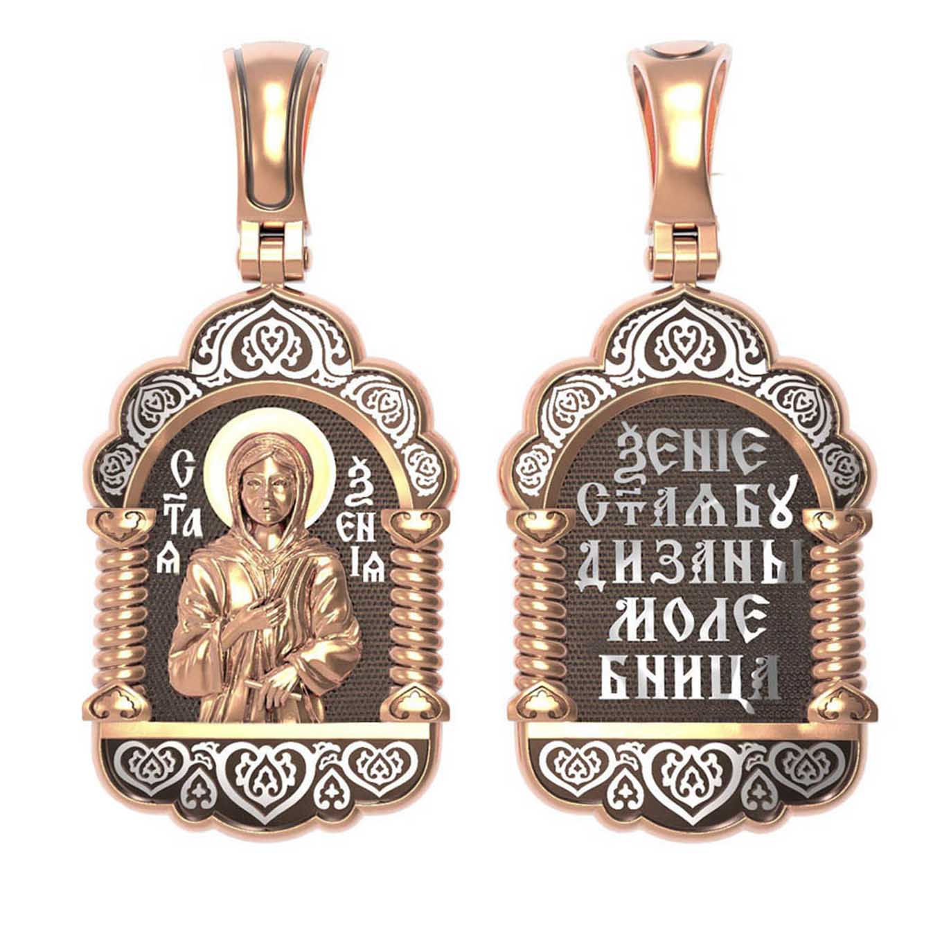 На лицевой стороне образка изображена Святая блаженная Ксения Петербургская, в миру Ксения Григорьевна Петрова.