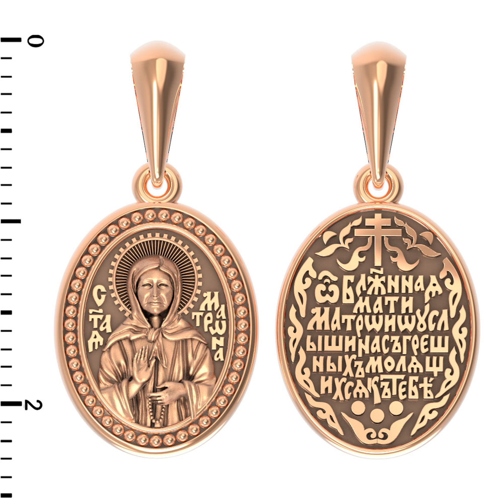 На лицевой стороне образка изображена Святая Матрона Московская.