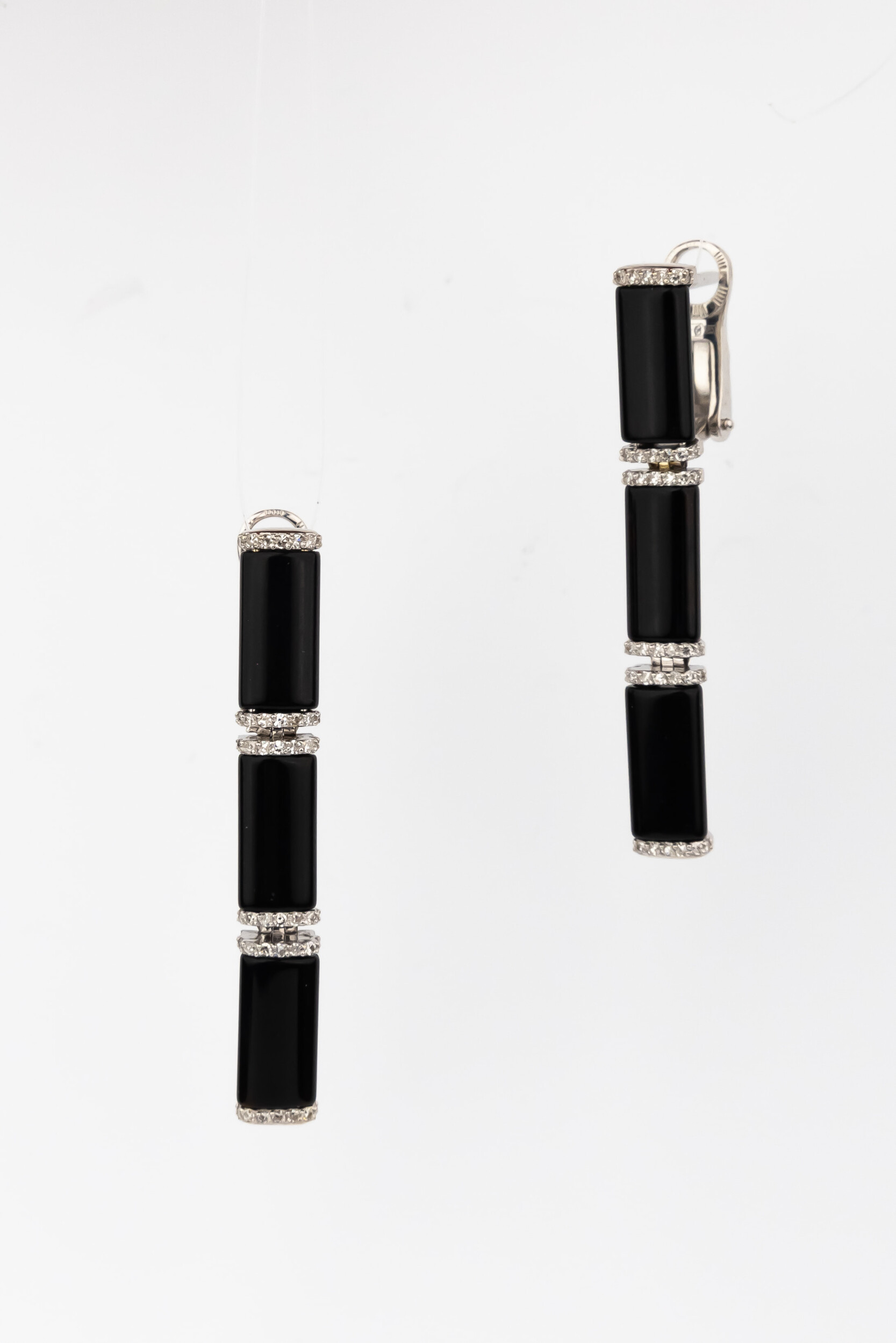 Серьги из белого золота c бриллиантами и ониксом