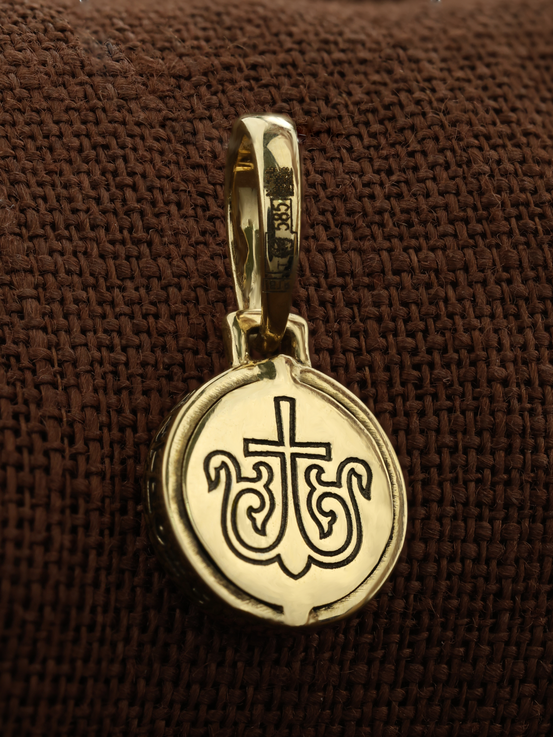 На обротной стороне изображён Крест «виноградная лоза». Крест, имеющий наклонное подножие, а из нижнего конца как бы вьются вверх два стебля с листами и с виноградной кистью на каждом. «Я есмь лоза, а вы ветви; кто пребывает во Мне, и Я в нем, тот приносит много плода» (Ин. 15, 5). Виноградной лозой называл себя Сам Спаситель и с тех пор образ этот стал глубоко символичен- Главное значение виноградной лозы для христиан, — пишет А. С. Уваров, — находилось в символической связи с Таинством Причащения. Причащаясь, пребываем мы во Господе, и Он в нас, и тогда получаем много «плода духовного».