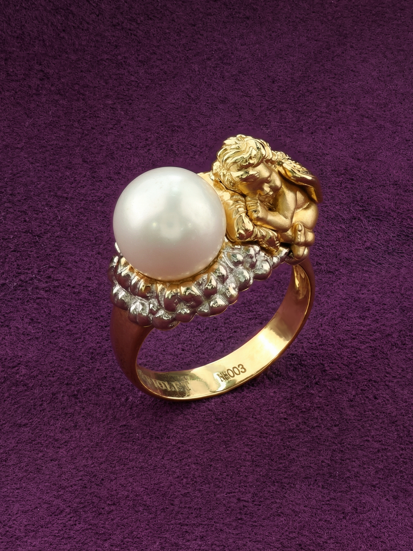 Кольцо из лимонного золота c жемчугом