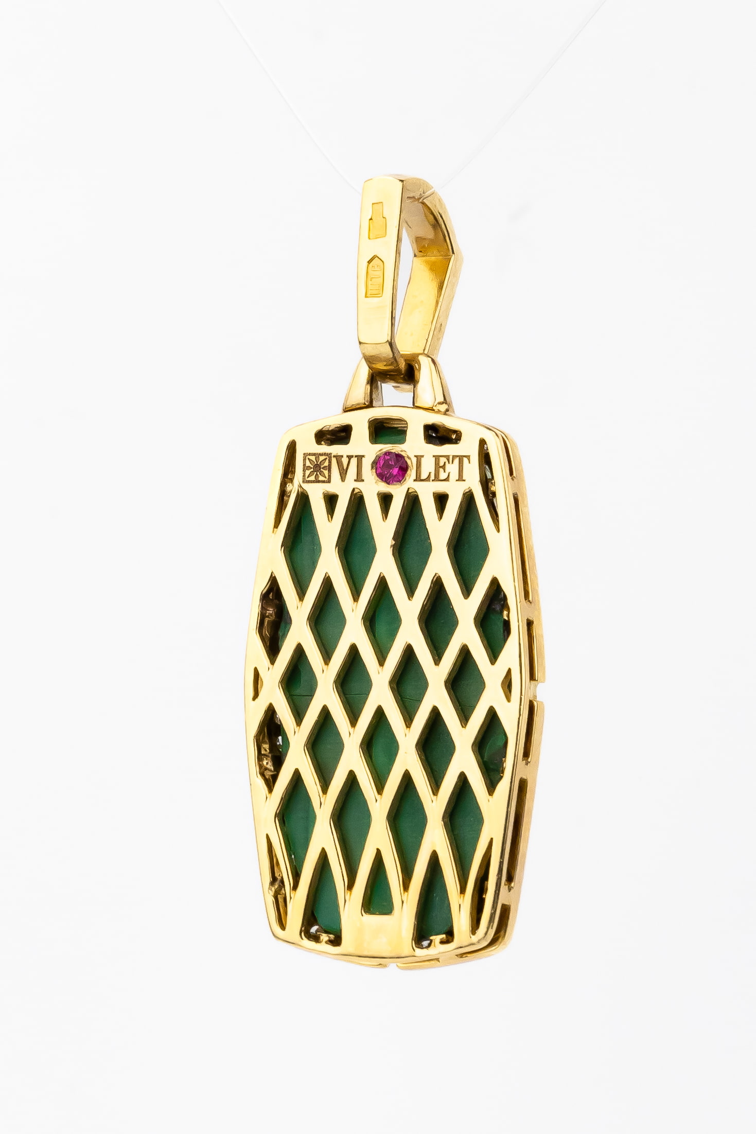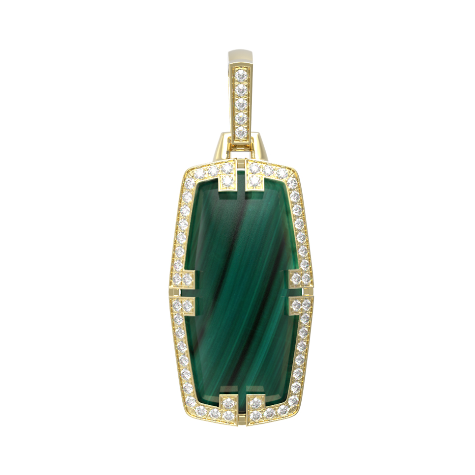 Подвеска из лимонного золота c бриллиантами, рубином и малахитом