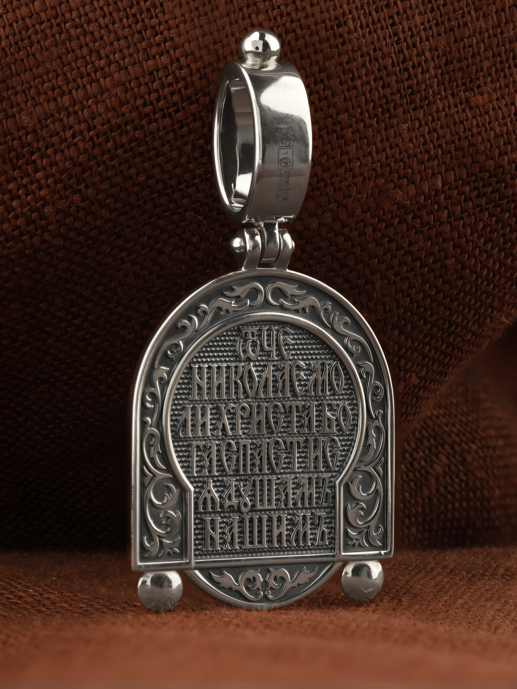 На оборотной стороне образка написаны слова молитвы: «Отче Николае, моли Христа Бога спастися душам нашим».