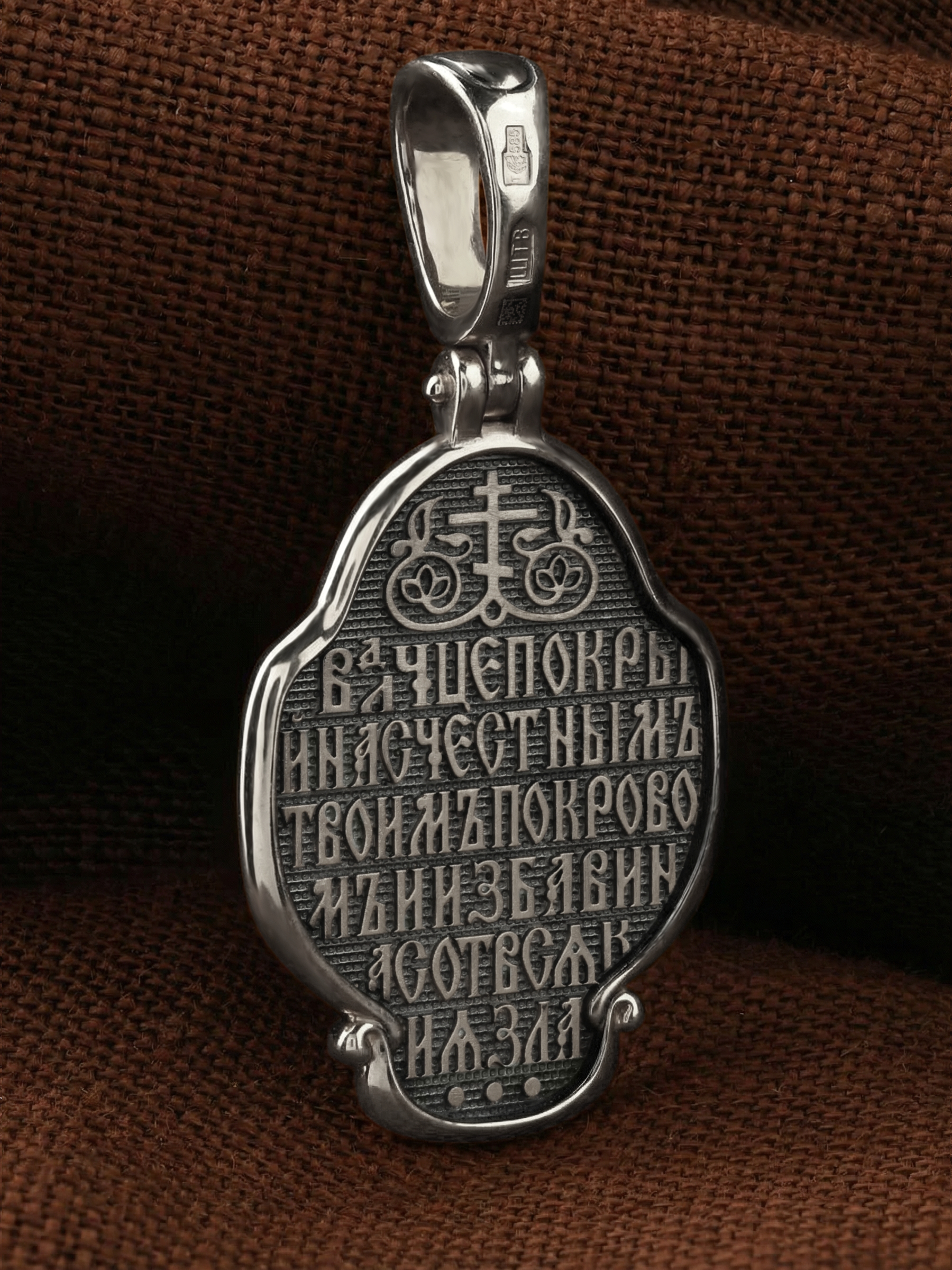 На обороте образка написано: «Владычице, покрой нас Честным Твоим покровом и избави нас от всякия зла».