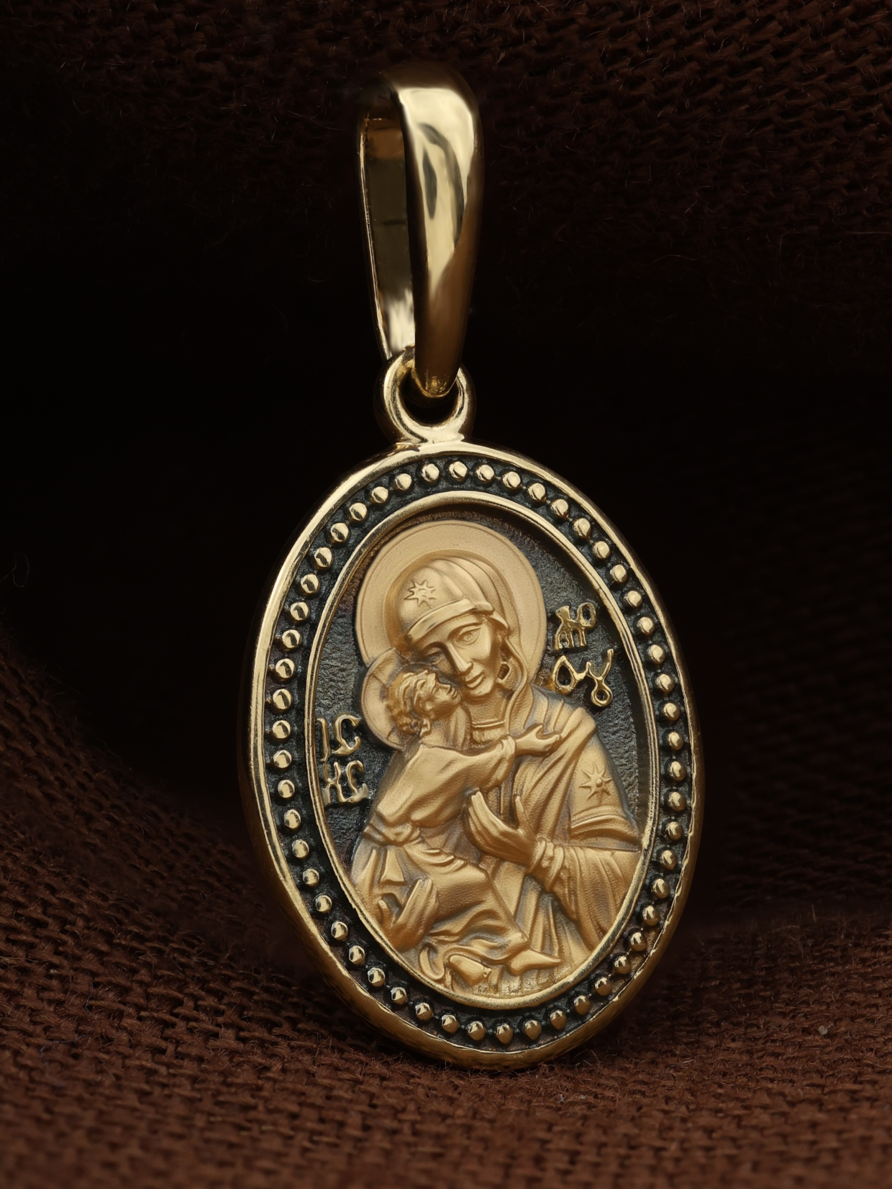 Лицевую сторону возглавляет Владимирская икона Божией Матери. По преданию, она была написана на доске трапезного стола из дома Иисуса Христа. На Русь икона была привезена в начале XII века и с тех пор почитается как главная святыня нашего Отечества. Перед ней молитвенно просят Богородицу об исцелении от телесных недугов, в частности, заболеваний сердца и сердечно-сосудистой системы. За помощью к Владимирской иконе Божией Матери обращаются во время бедствий, когда нуждаются в защите от врагов.
