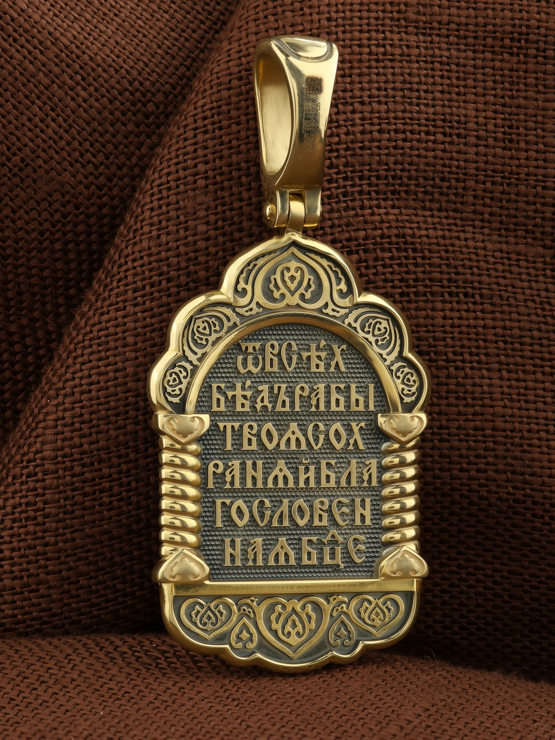 На лицевой части образка изображена Казанская икона Пресвятой Богородицы — одна из самых почитаемых в России. Икона была явлена на пожарище в Казани в 1579 году. В 1904 году святыня была похищена и уничтожена, но чудотворную силу иконы Богородица явила во многих ее списках. Молитва перед Казанской иконой Божьей Матери помогает во всех сложных случаях жизни, во всех печалях, невзгодах, скорбях.