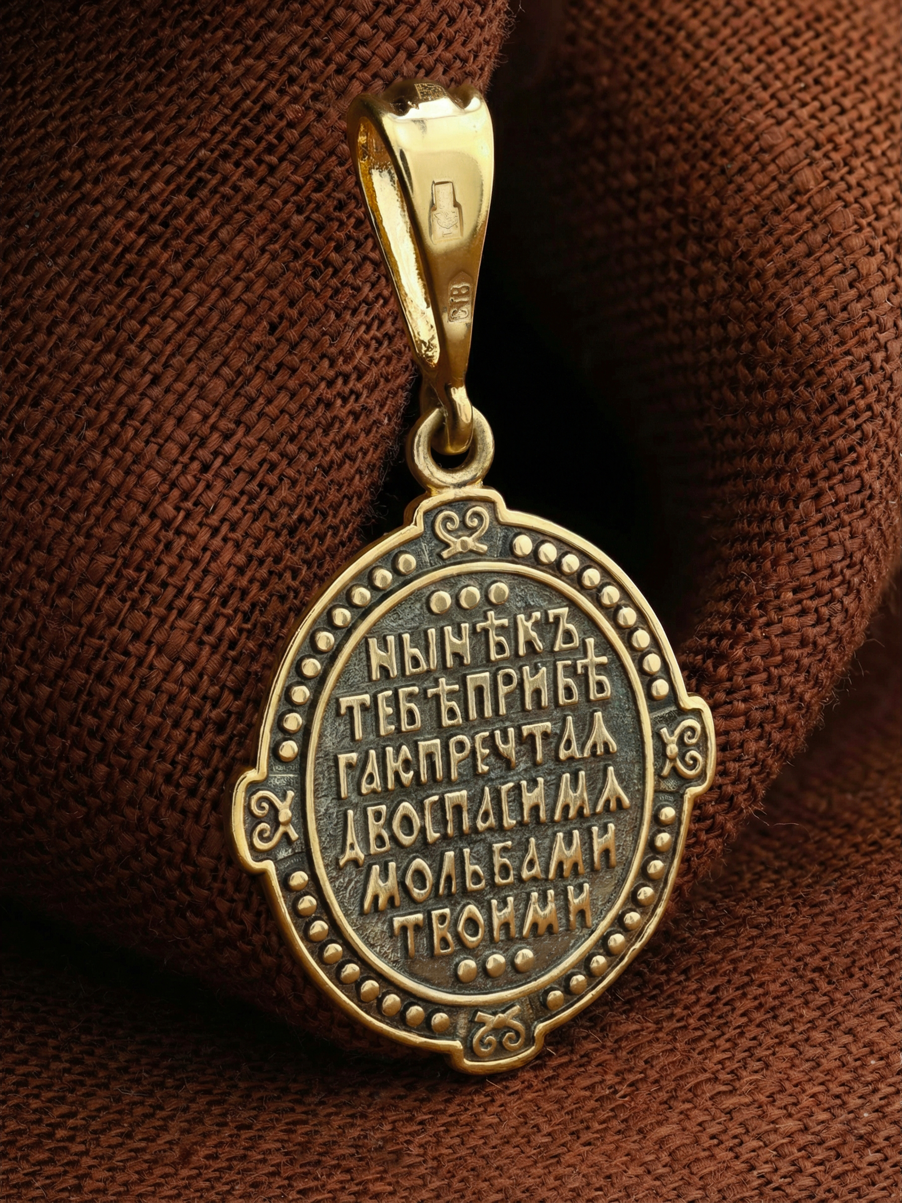 На обороте образка написана молитва Богородице: «Ныне к Тебе прибегаю, Пречистая Дево, спаси мя молитвами Твоими».