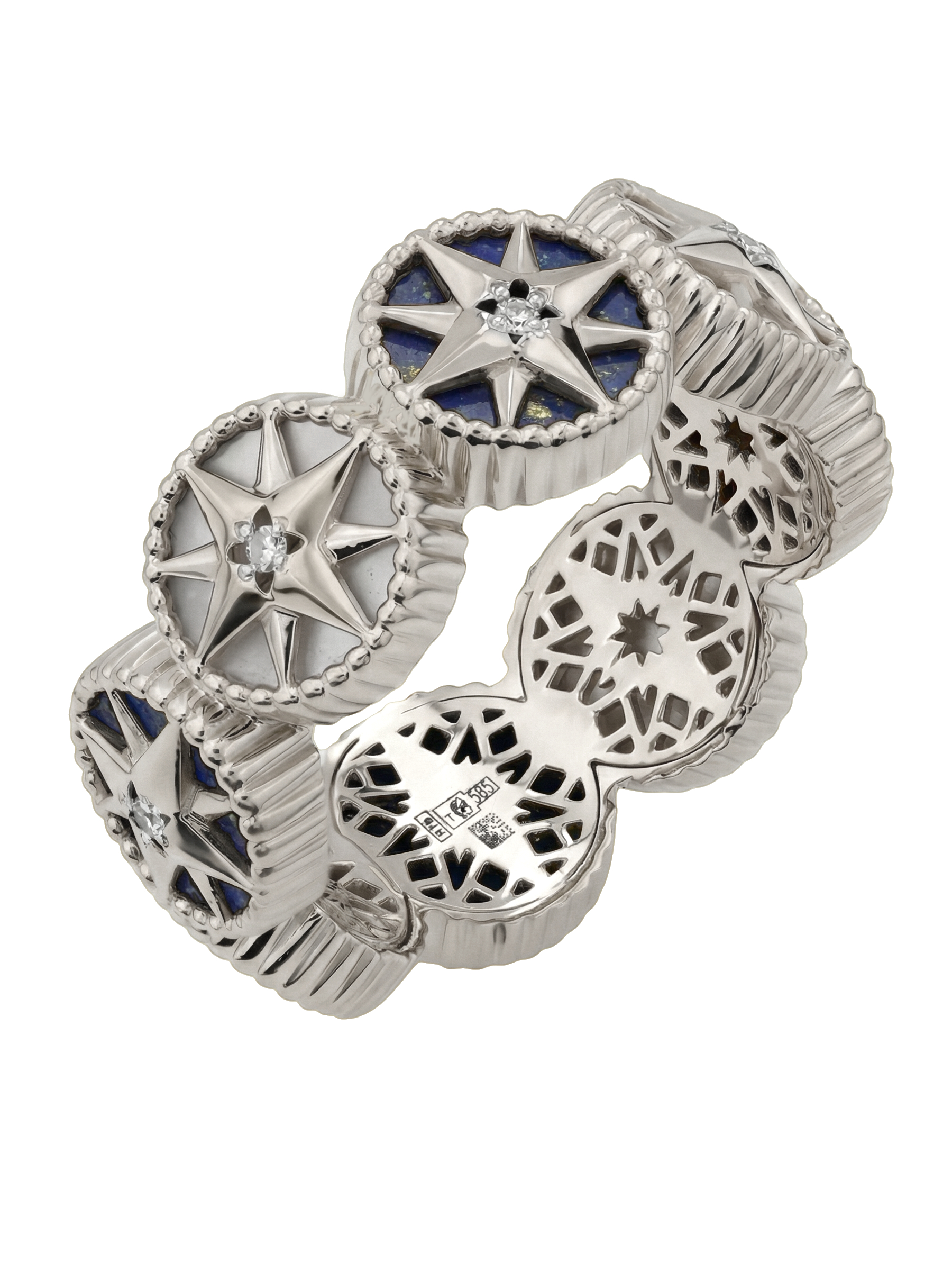 Кольцо из белого золота c бриллиантами, лазуритом и перламутром
