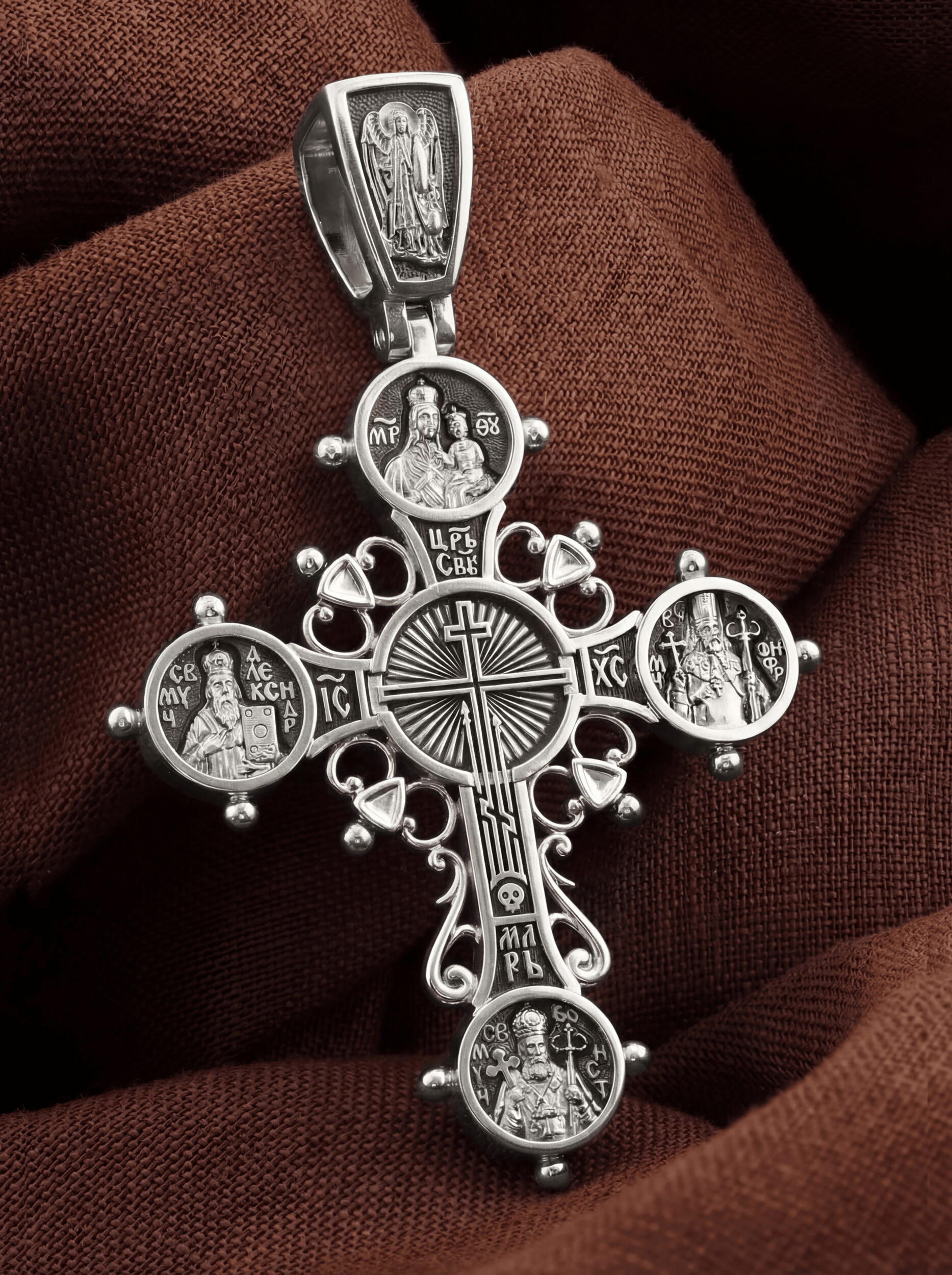 Сочетание креста и круга — мотив, имеющий древнее происхождение. У многих народов издревле круг обозначал небо, а крест — четырехчастную землю. Эти ёмкие символы, как и многие другие, наследовало христианство и обогатило их новым понятийным уровнем. Круг стал не только символом неба, но и знаком бесконечности и безначальности Бога, вечной жизни и совершенной гармонии. Крест перестал обозначать лишь стороны света. Он сделался знаменем христианства, символом земных страданий Христа, искупления человечества, соразмерности и целостности земного и небесного бытия.