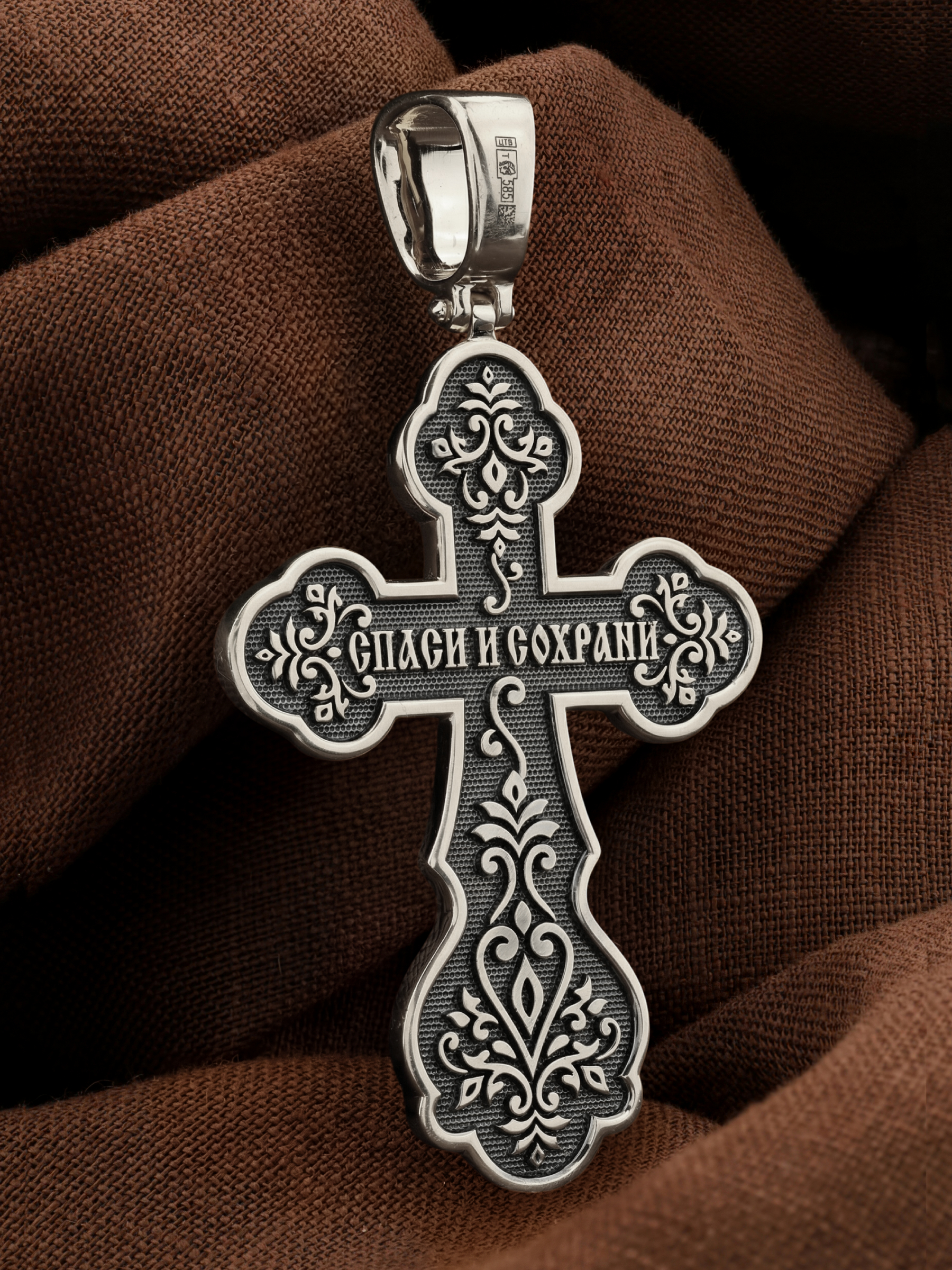 На обороте данного креста написано молитвенное славословие: «Спаси и сохрани».