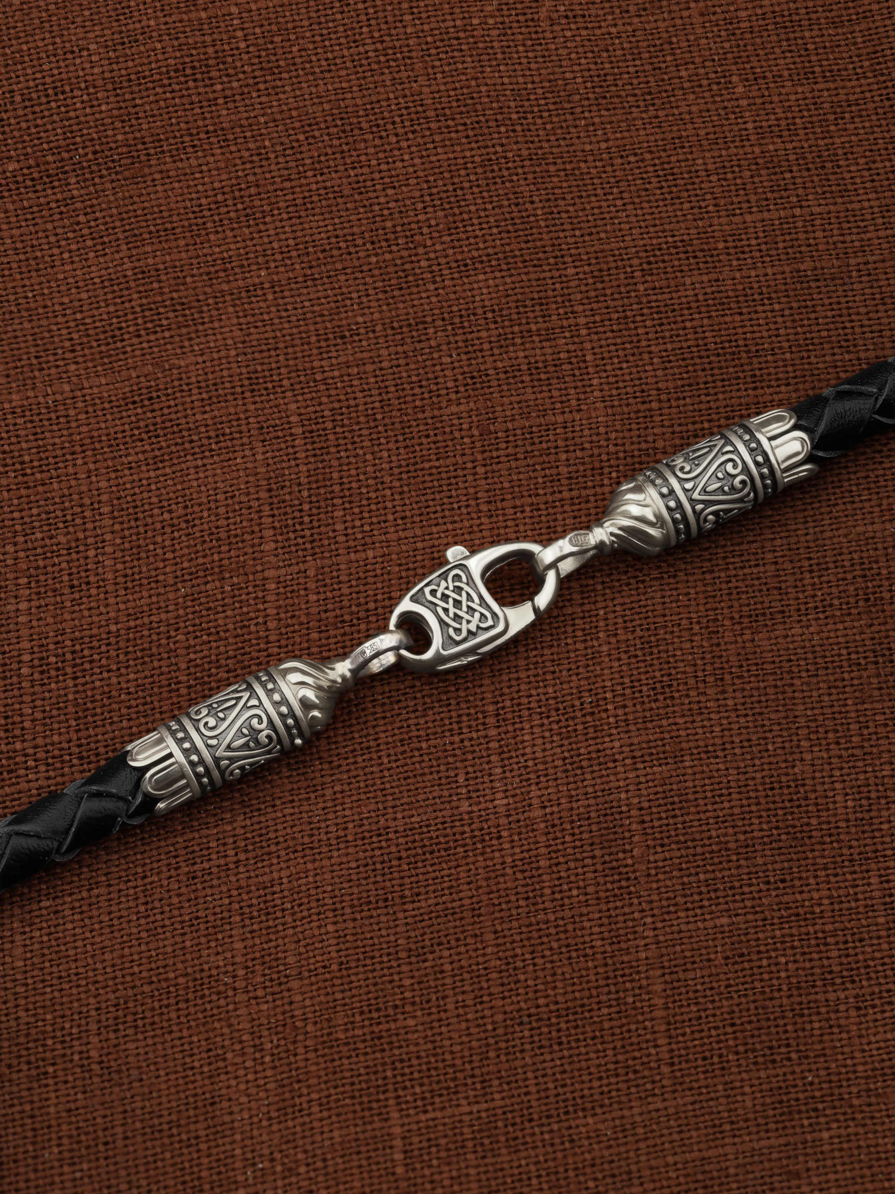 Гайтан из белого золота c кожаным шнурком
