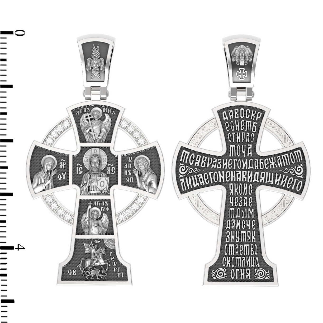 Вверху и внизу от спасителя предстоят два архангела, Михаил (Первый служитель Божественной славы, страж и защитник) и Гавриил (служитель Божественной крепости и изъявитель сокровенных Божьих тайн). Внизу помещен образ свт. Георгия Победоносца. Святой при жизни прославился не только как храбрый воин и твердый исповедник веры, но и как сострадательный, милосердный целитель и чудотворец. Святому молятся о покровительстве воинам и армии, о защите государства, сохранении и спасения России.