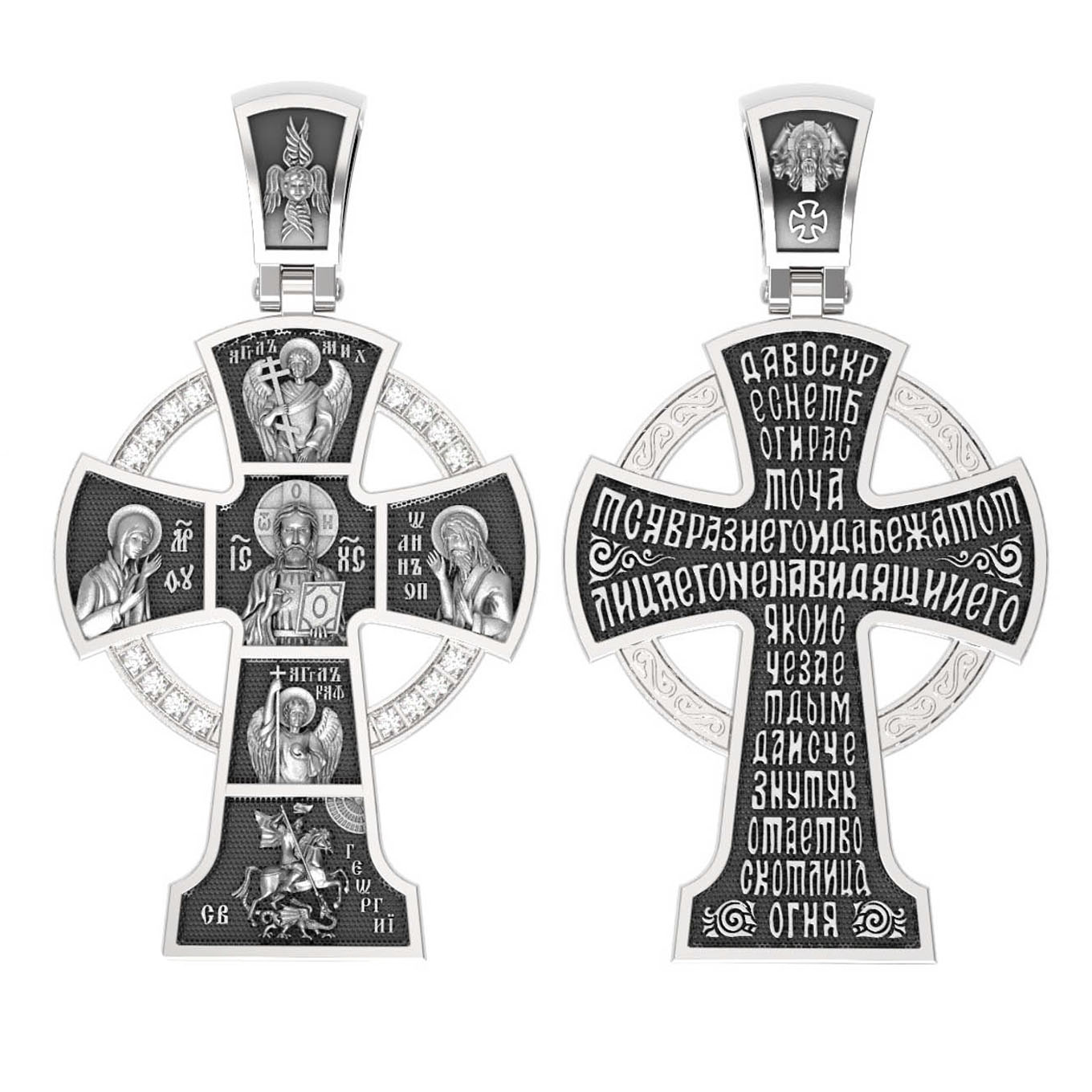 На обороте написан начальный стих оградительной молитвы Честному Кресту Господню: «Да воскреснет Бог, и расточатся врази Его, и да бежат от лица Его ненавидящии Его. Яко исчезает дым, да исчезнут; яко тает воск от лица огня, тако да погибнут беси от лица любящих Бога и знаменующихся крестным знамением, и в веселии глаголющих: радуйся, Пречестный и Животворящий Кресте Господень, прогоняй бесы силою на тебе пропятаго Господа нашего Иисуса Христа, во ад сшедшаго и поправшаго силу диаволю, и даровавшаго нам тебе Крест Свой Честный на прогнание всякаго супостата. О, Пречестный и Животворящий Кресте Господень! Помогай ми со Святою Госпожею Девою Богородицею и со всеми святыми во веки. Аминь».