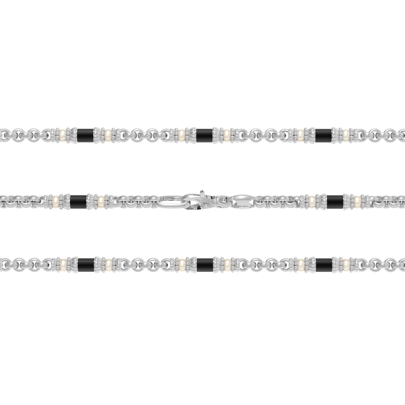 • Цепь из белого золота c жемчугом и ониксом