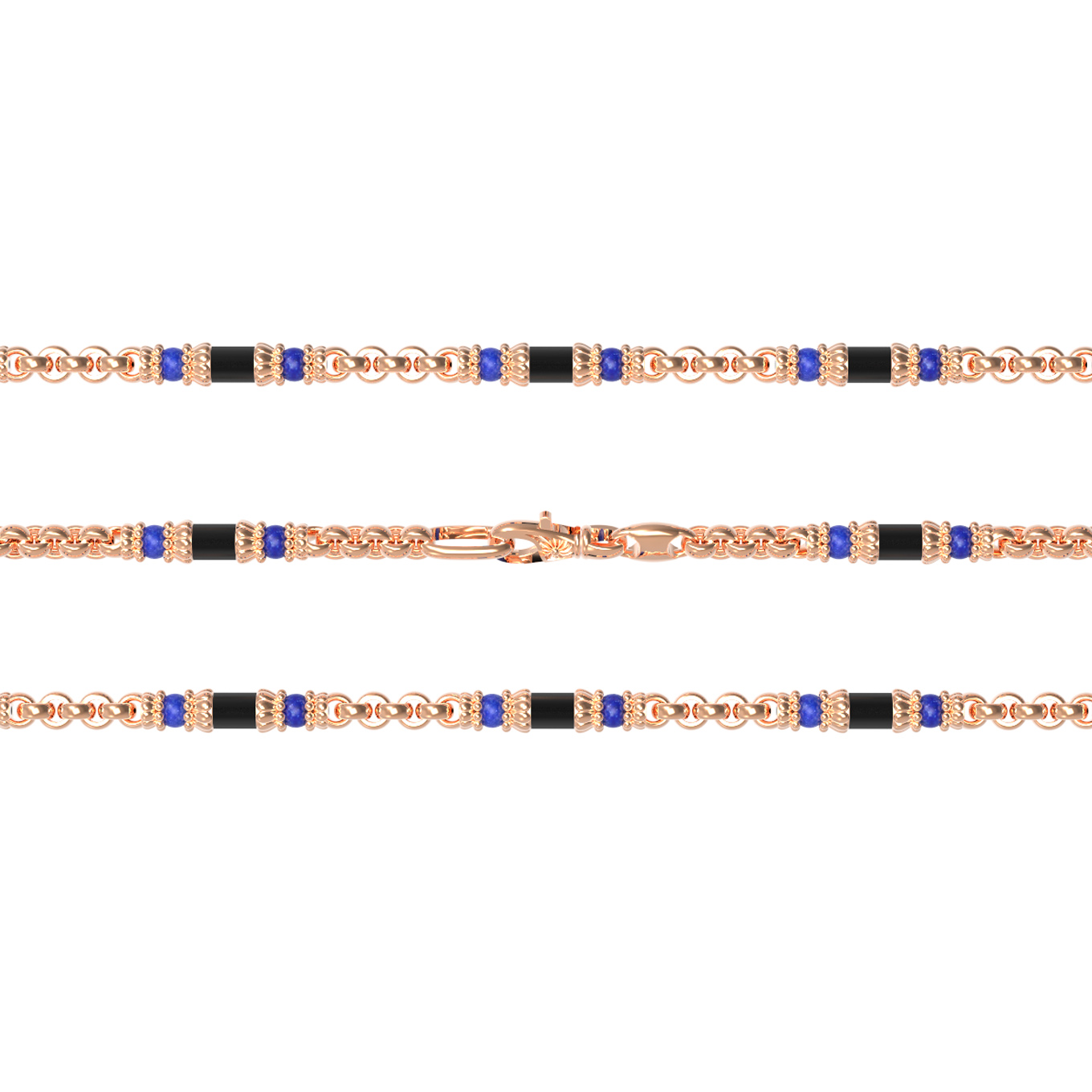 • Цепь из лимонного золота c ониксом и лазуритом