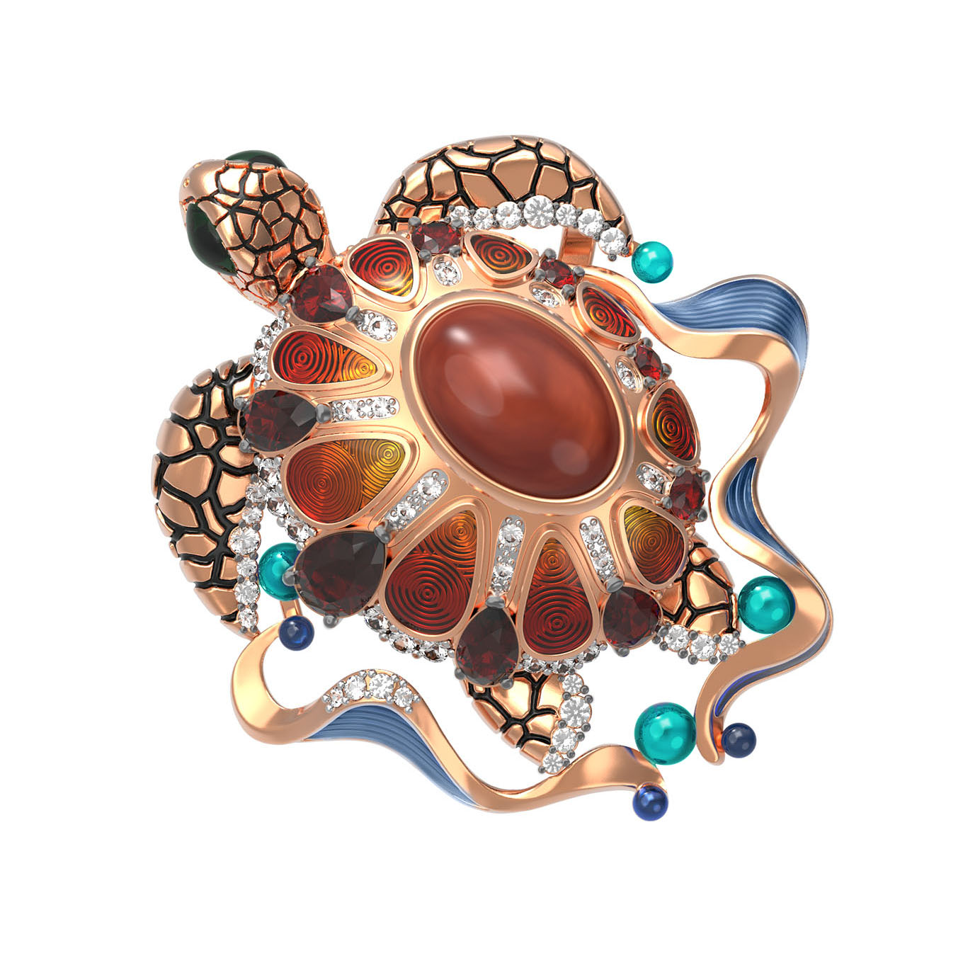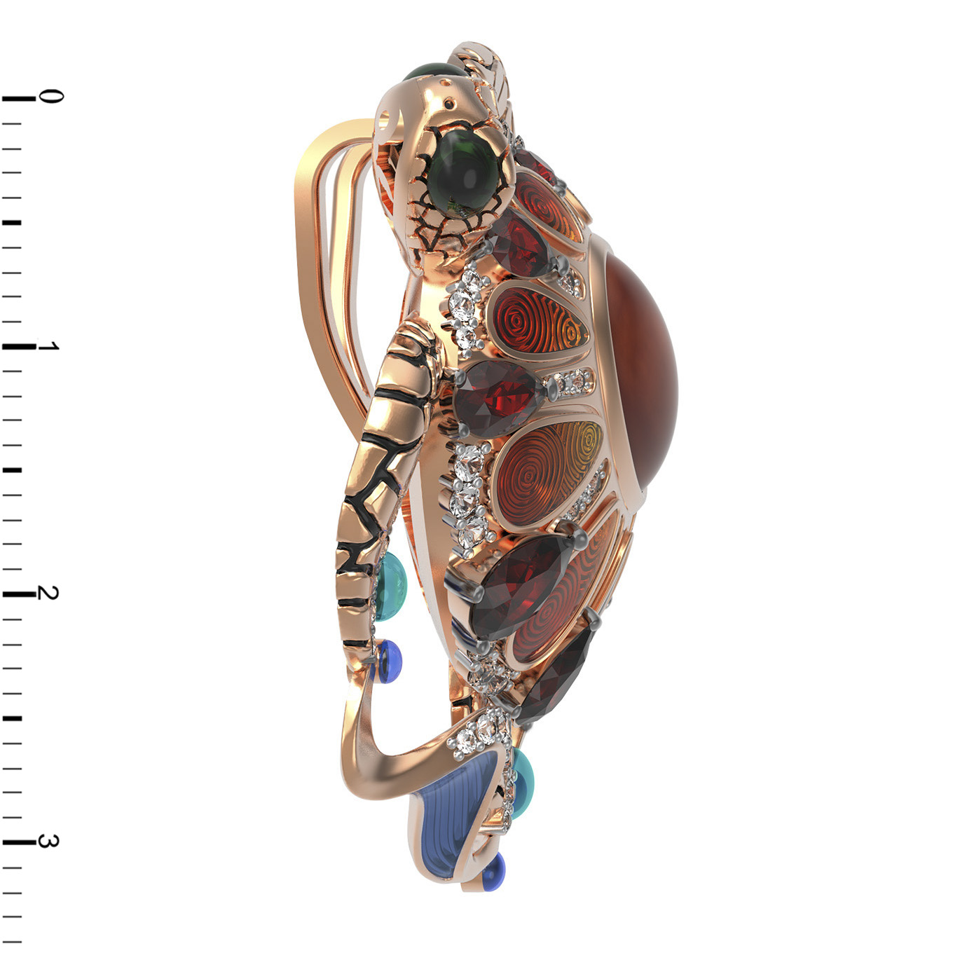 Подвеска из золота c эмалью, фианитом, гранатом и янтарём