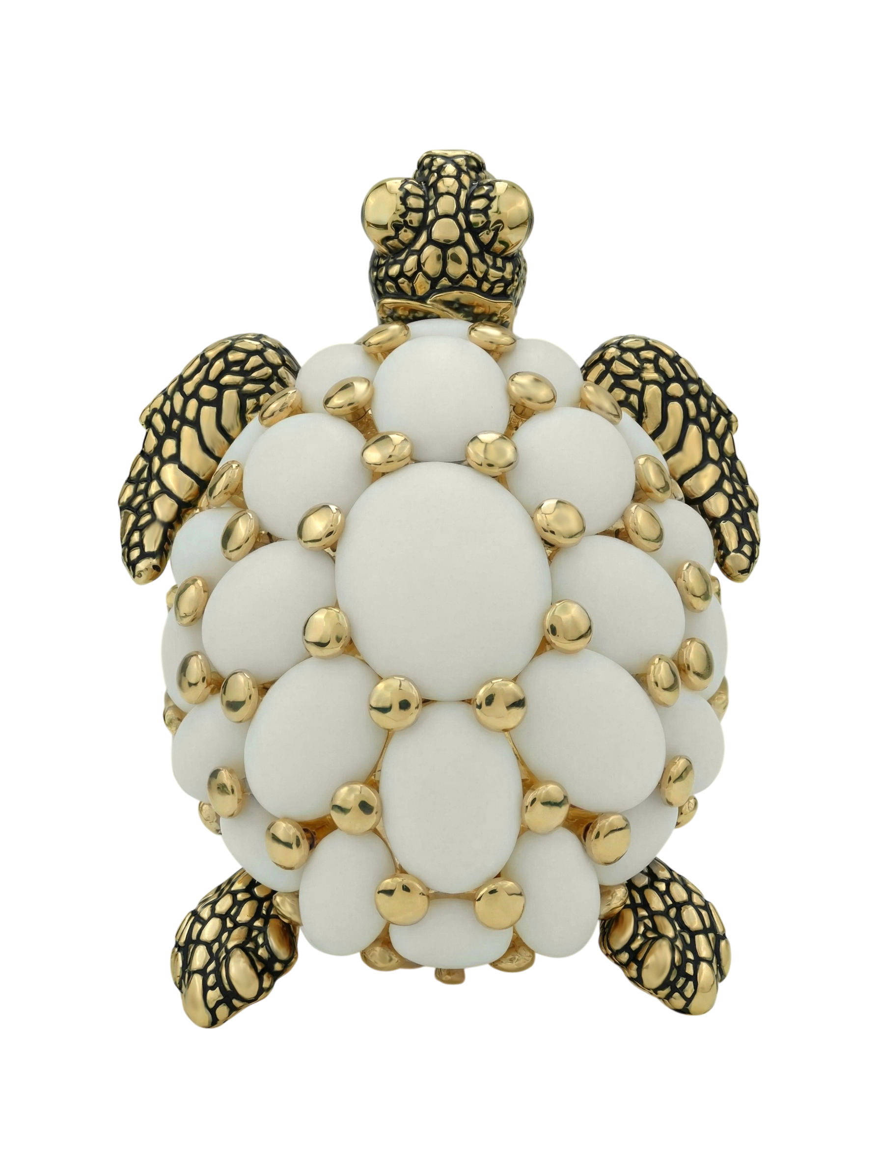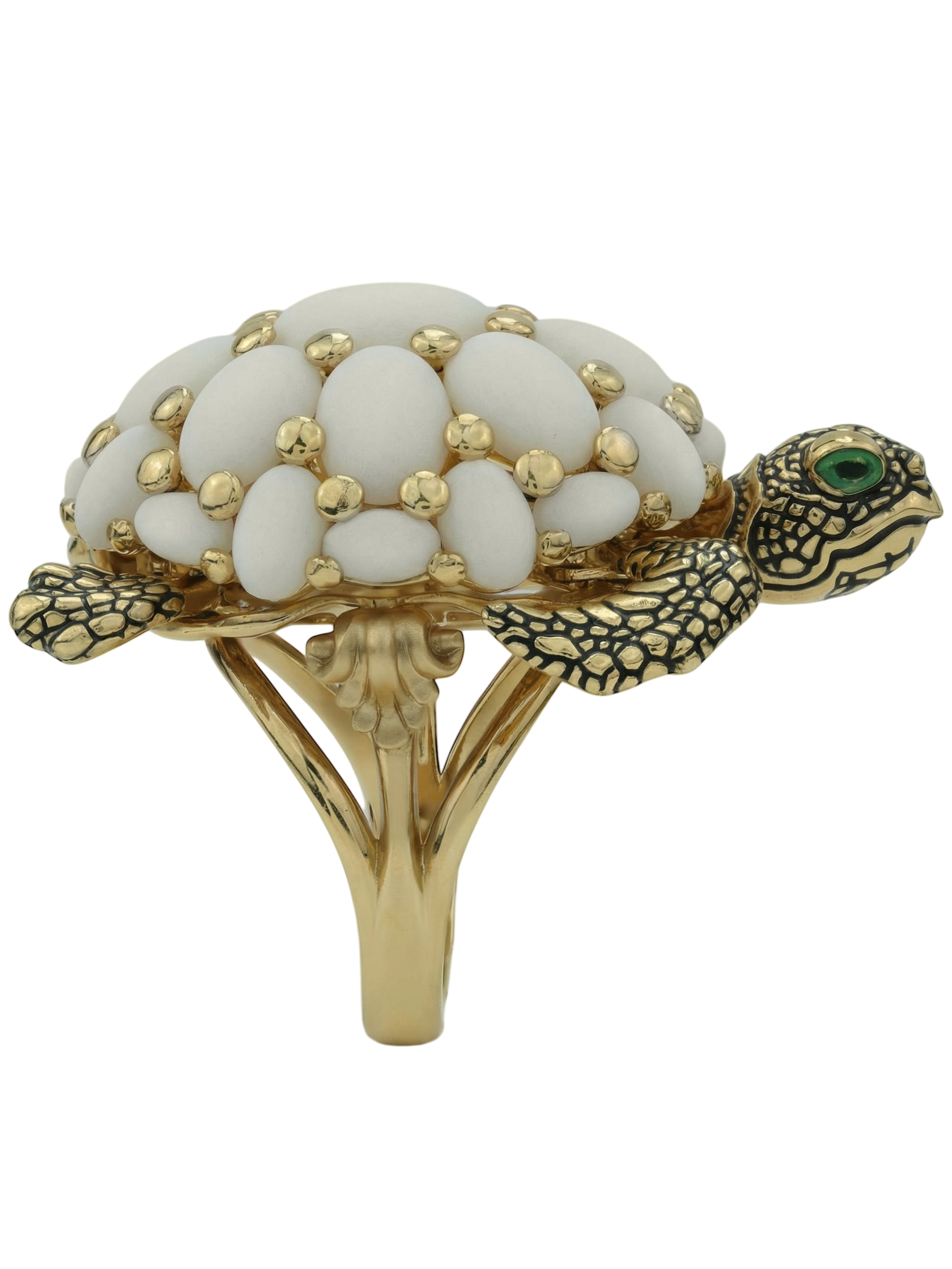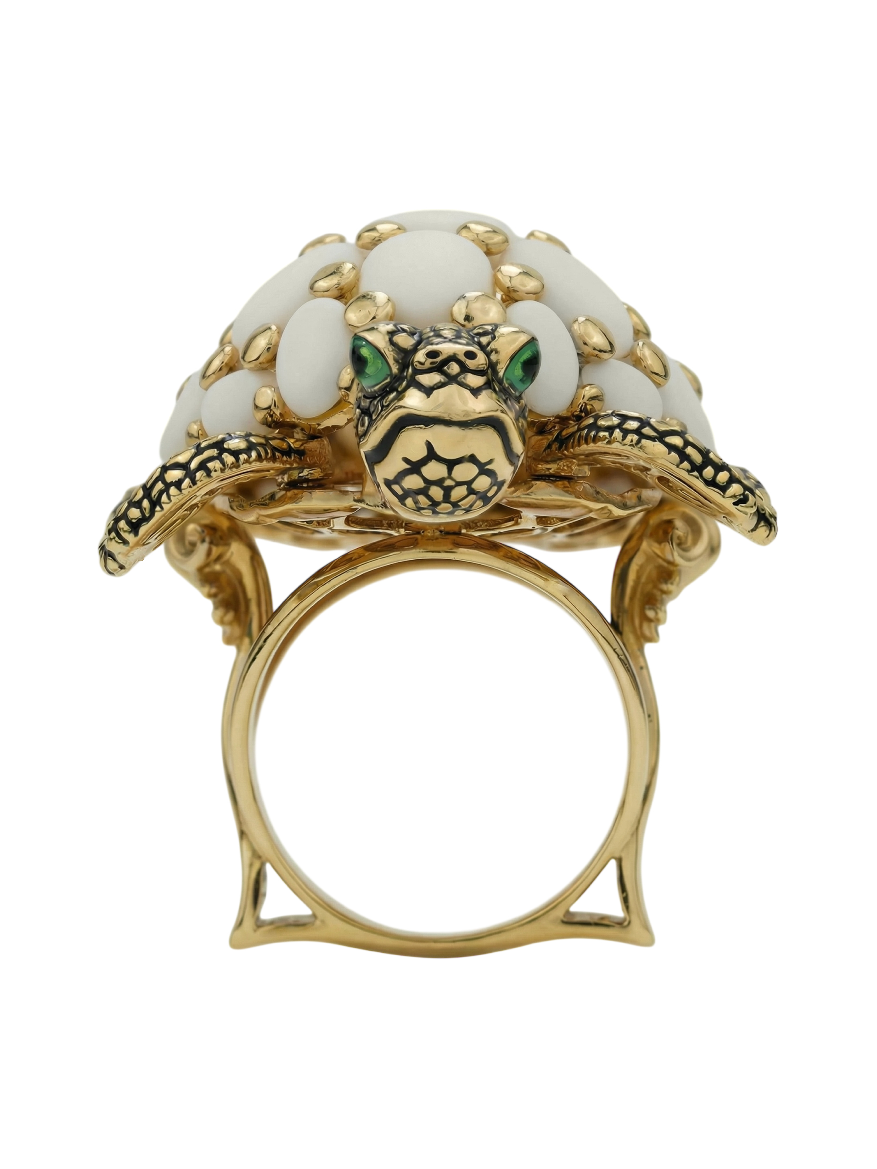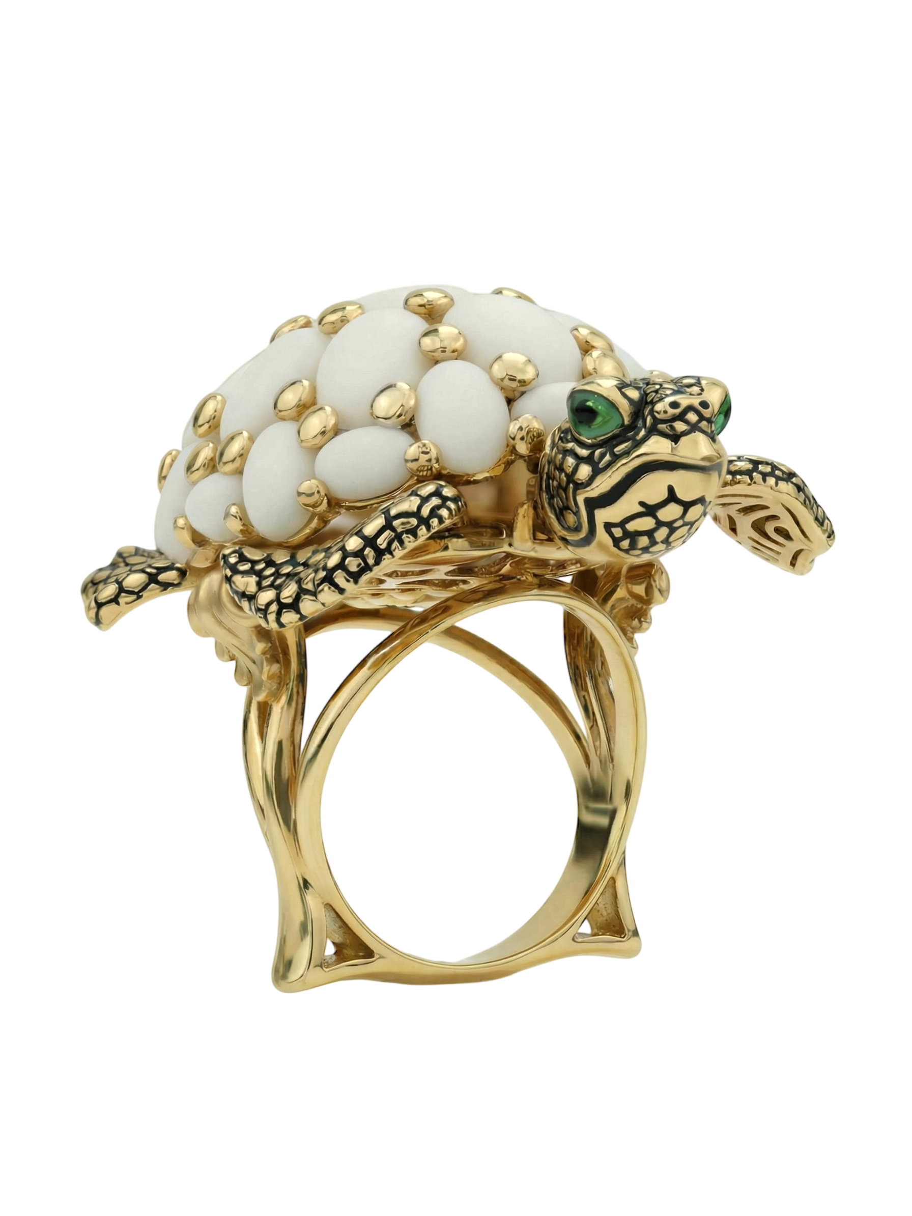 Кольцо из лимонного золота c эмалью и бивнем мамонта