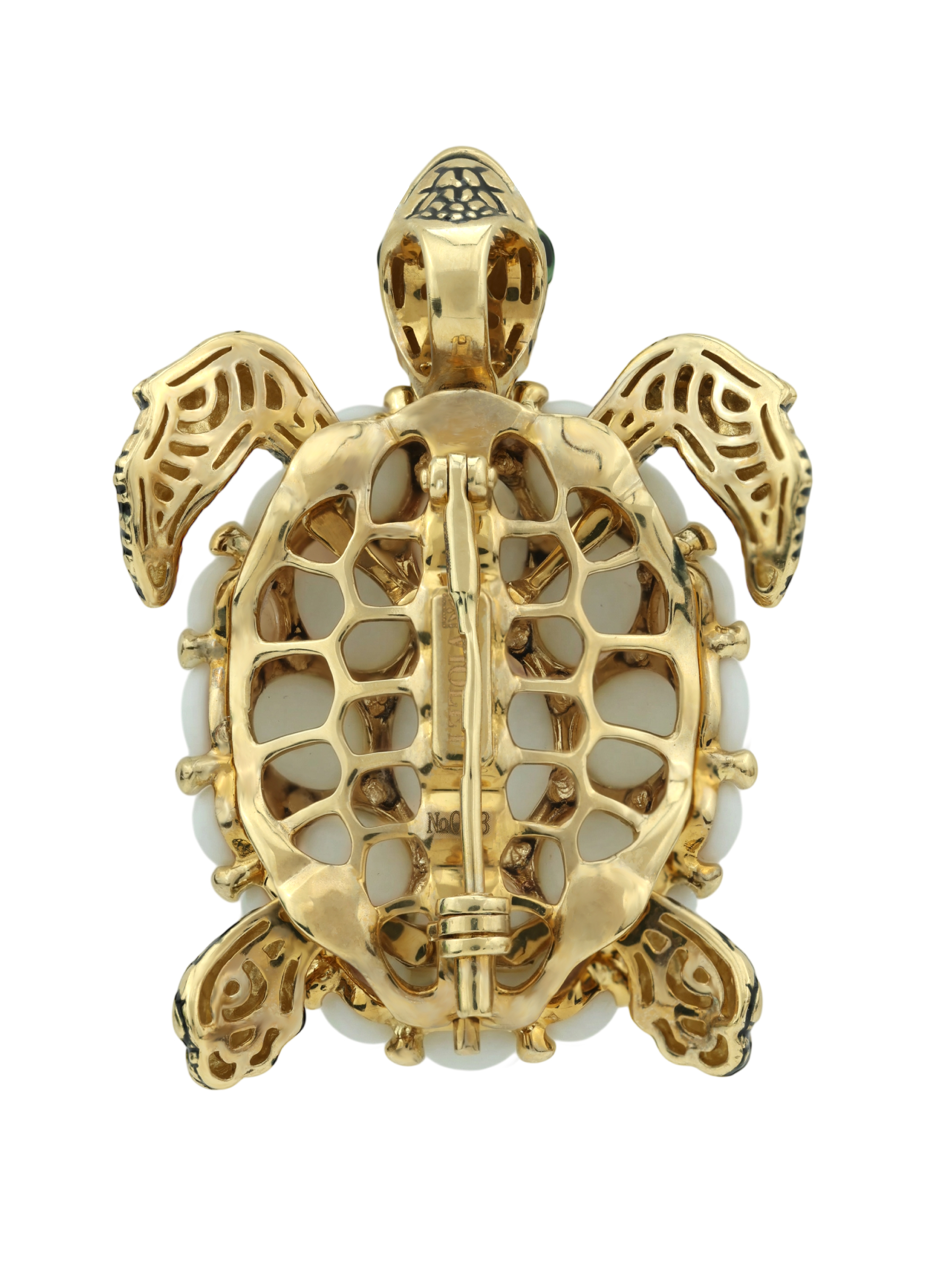 Брошь из лимонного золота c эмалью и бивнем мамонта