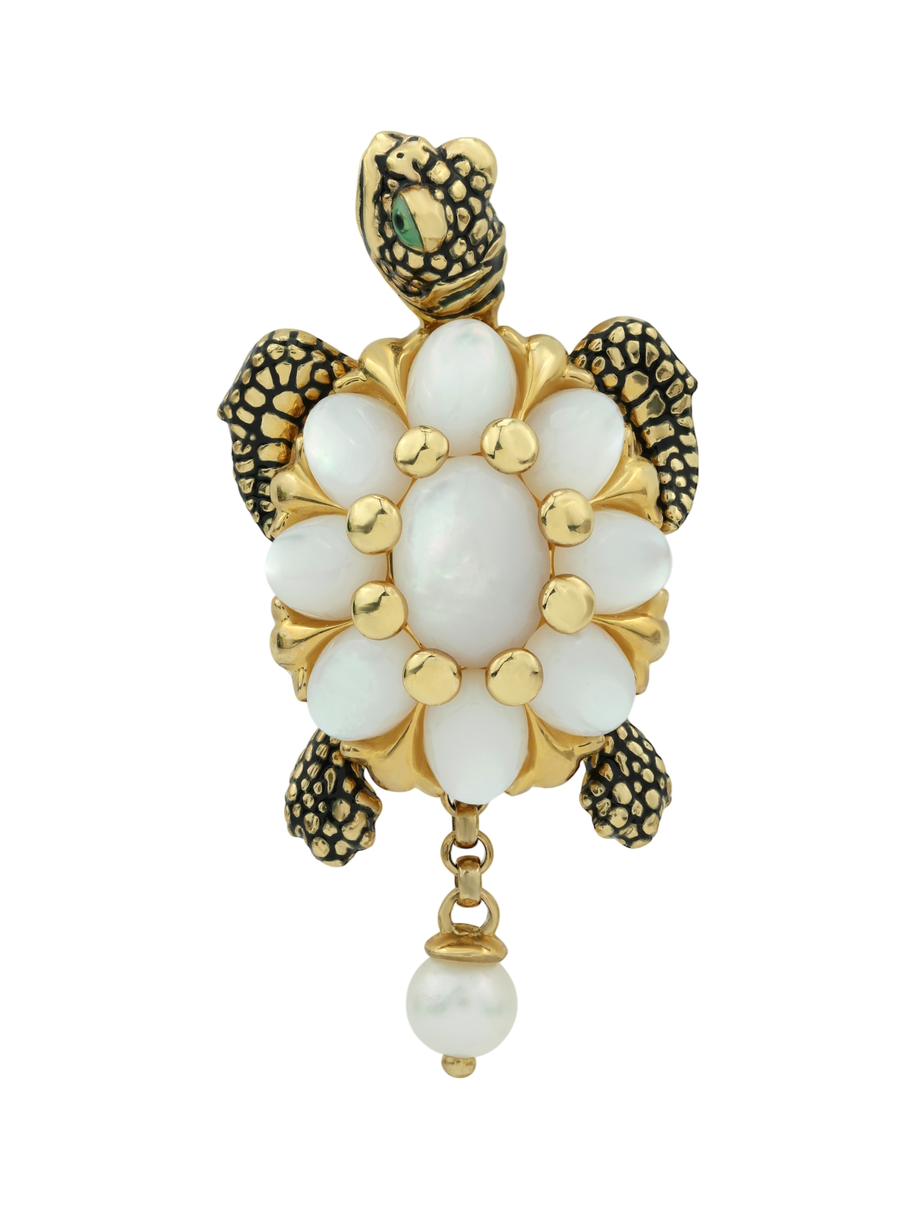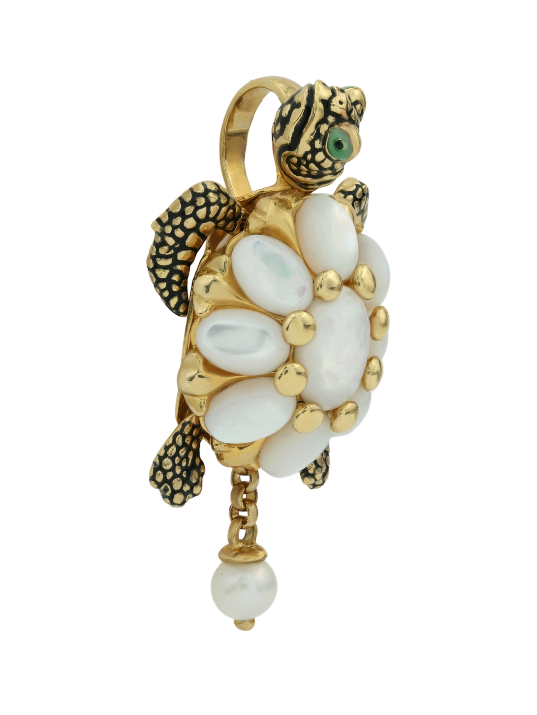 Подвеска из лимонного золота c эмалью, жемчугом и перламутром