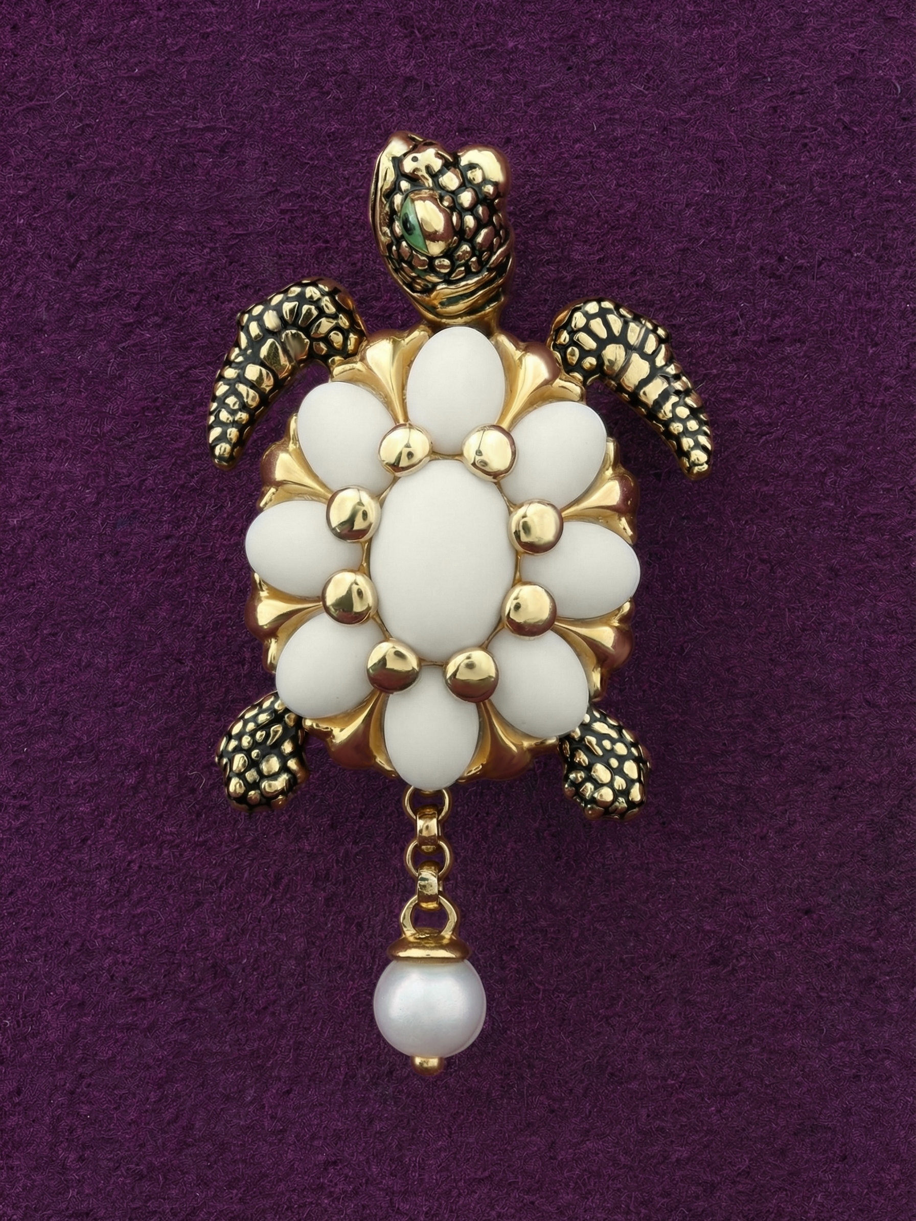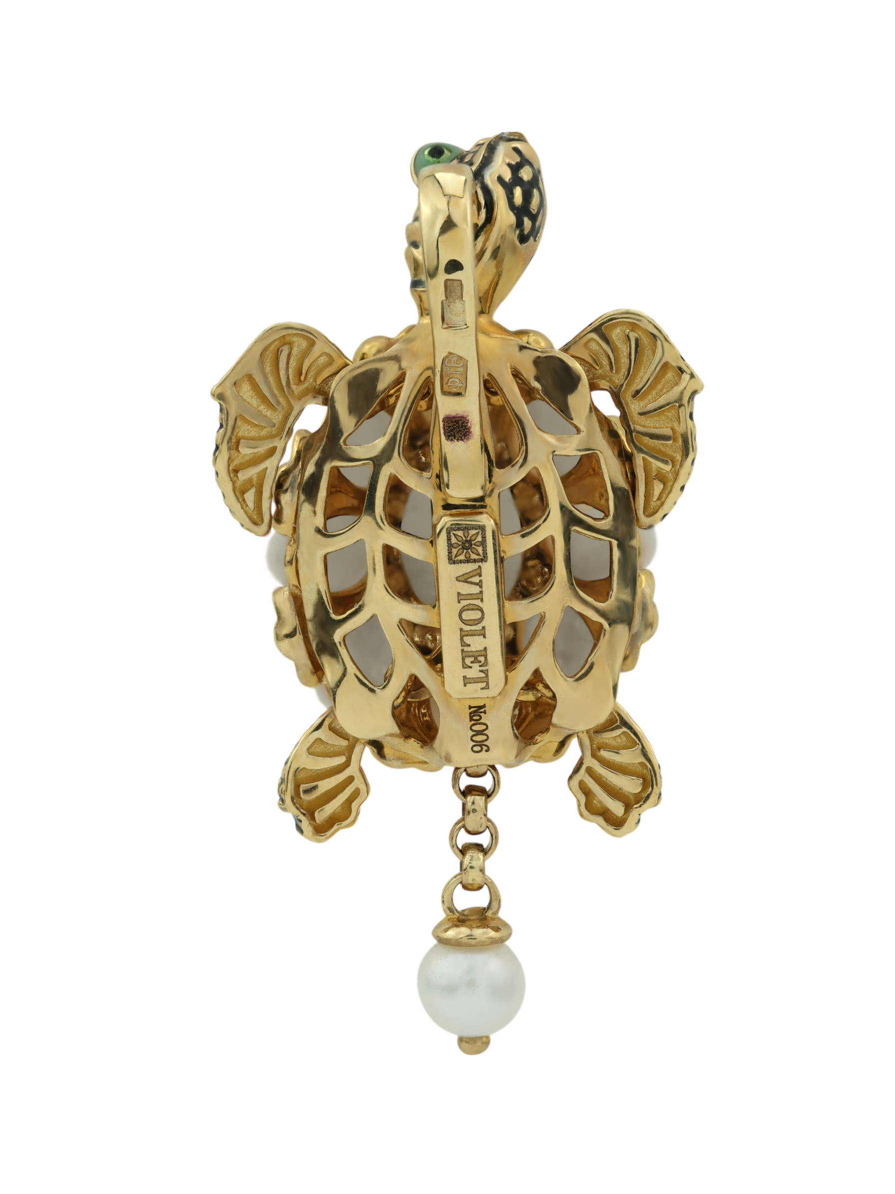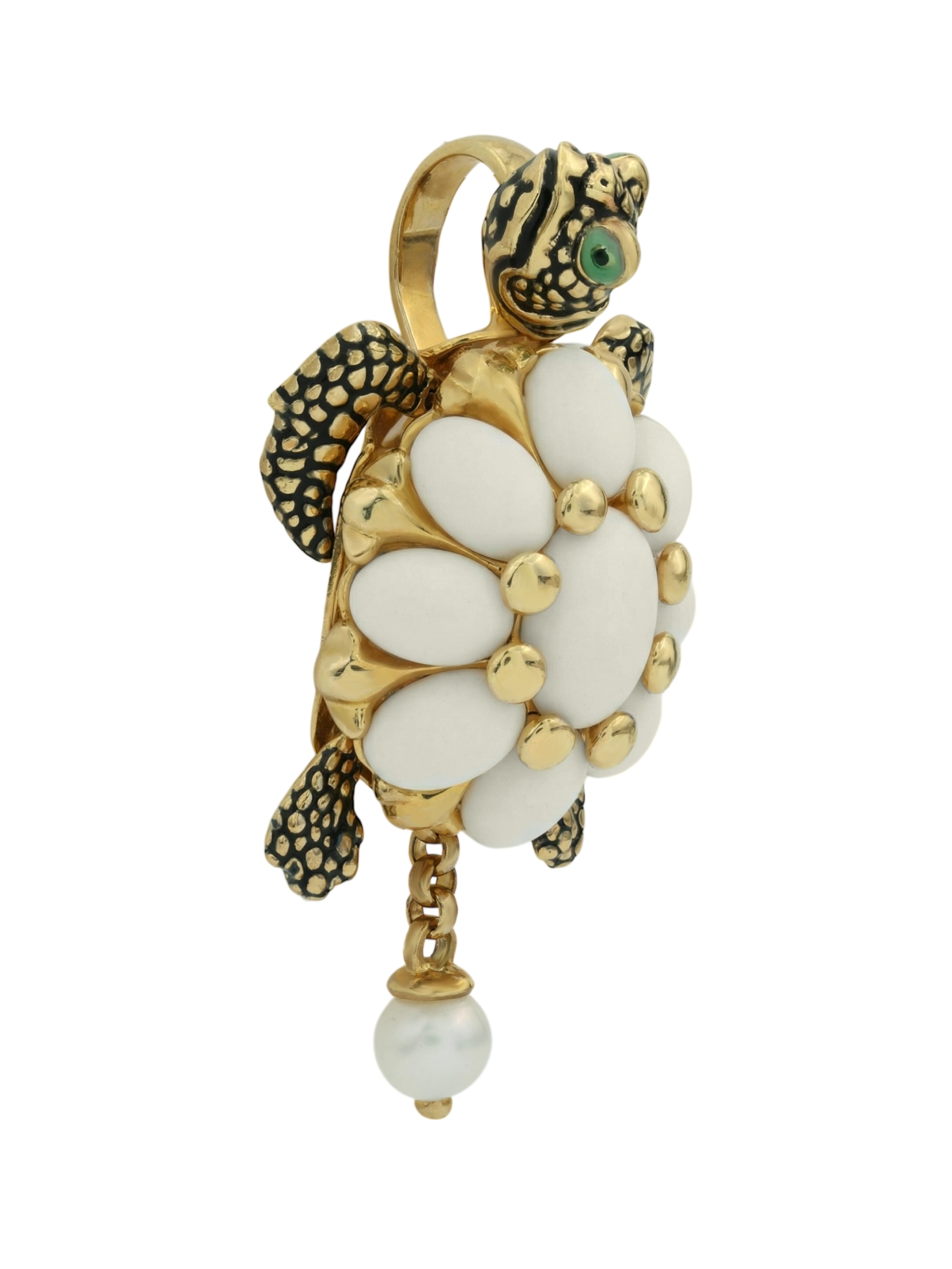 Подвеска из лимонного золота c эмалью, жемчугом и бивнем мамонта
