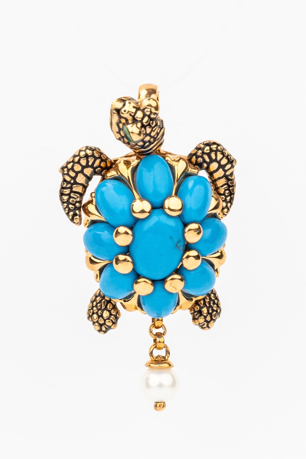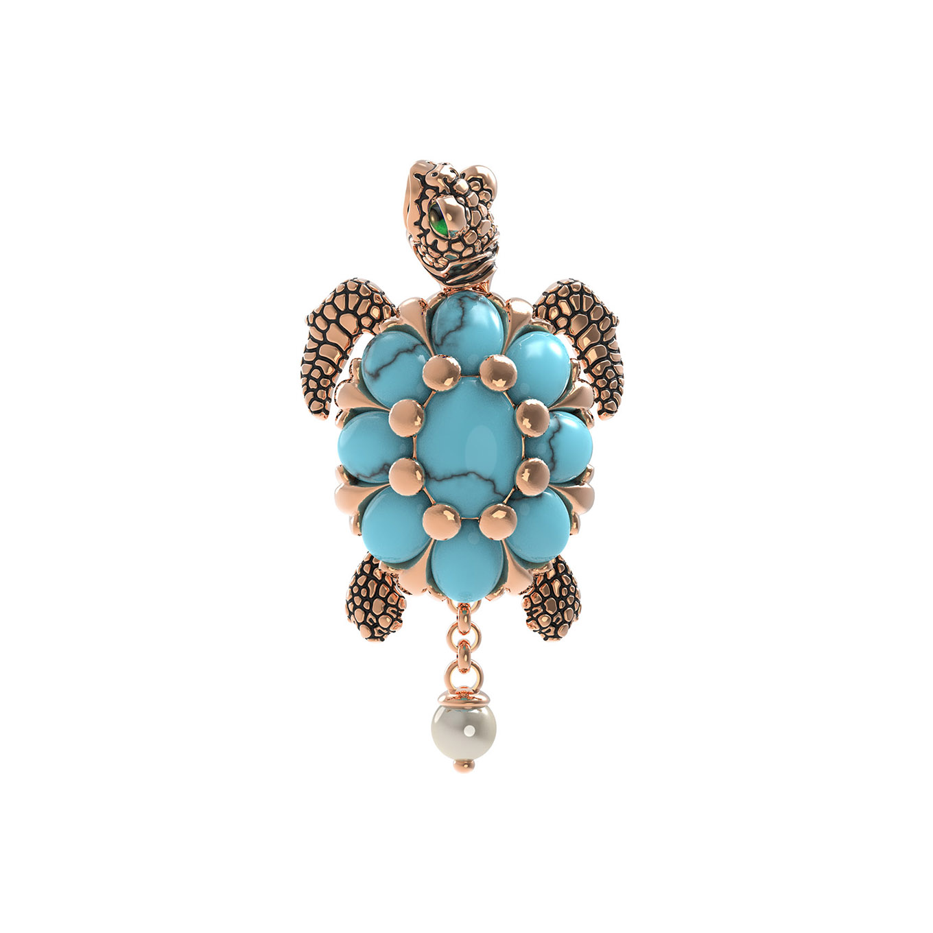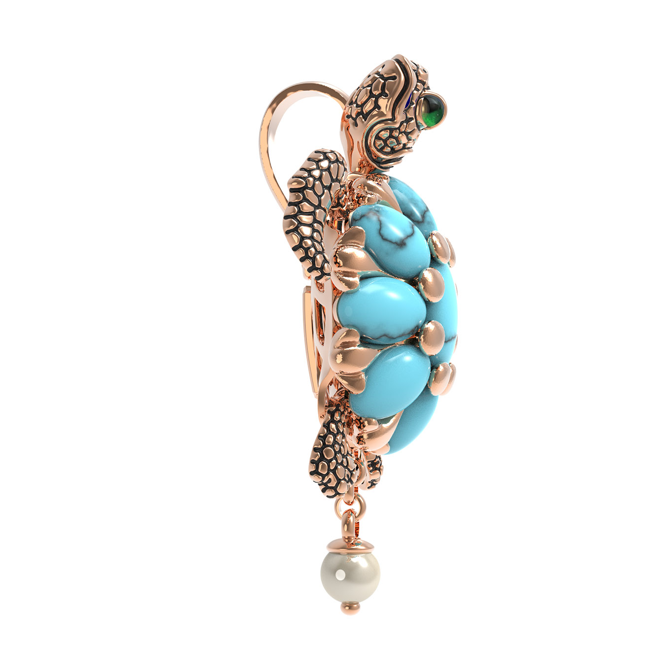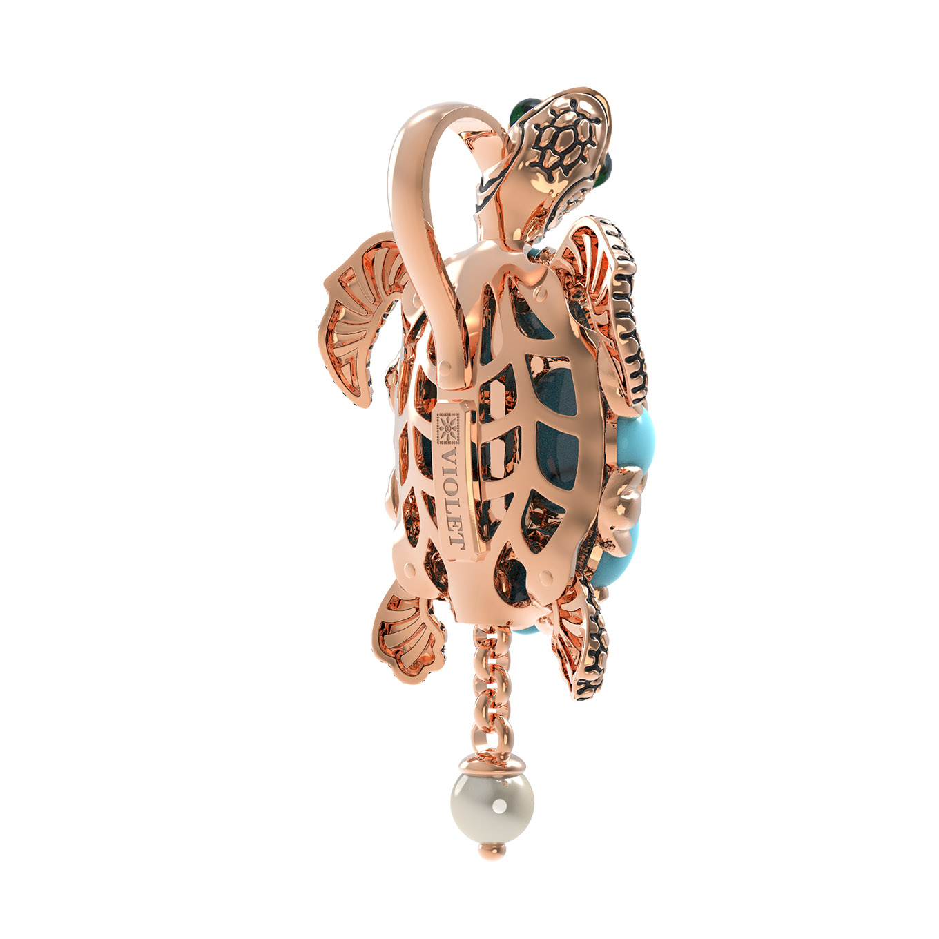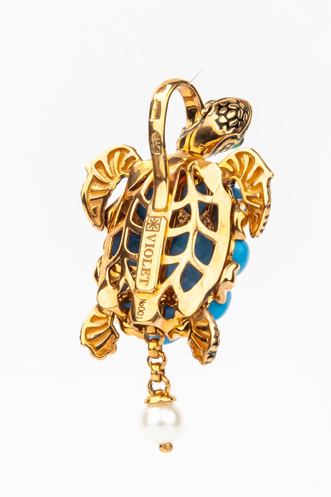 Подвеска из золота c эмалью, жемчугом и бирюзой