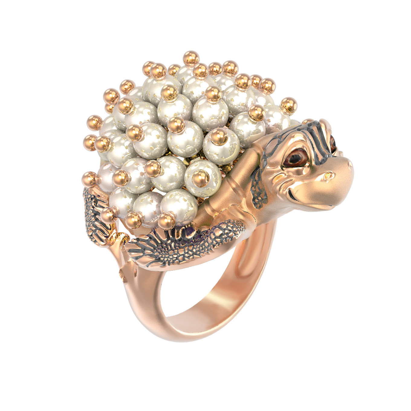 Кольцо из золота c эмалью и жемчугом