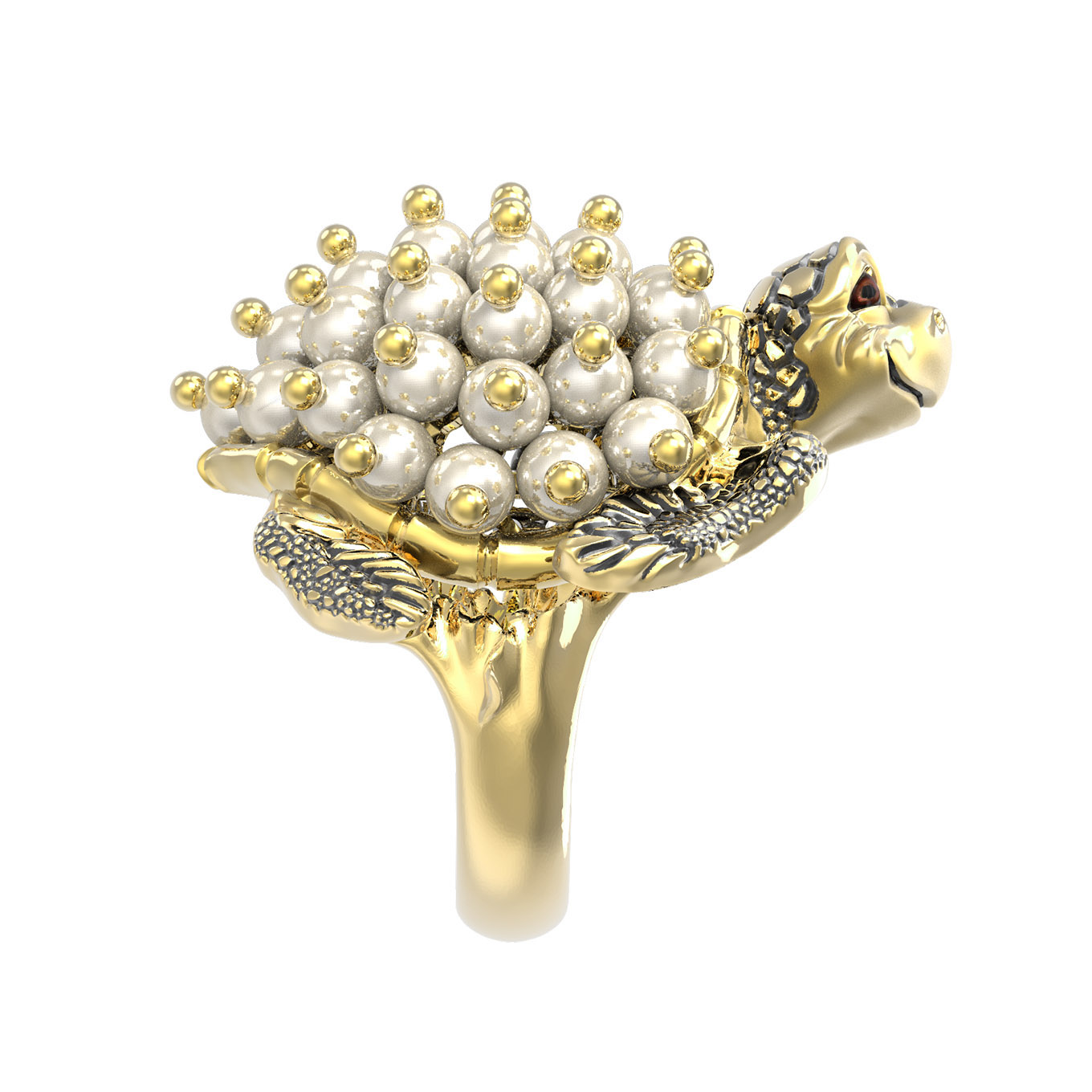 Кольцо из лимонного золота c эмалью и жемчугом