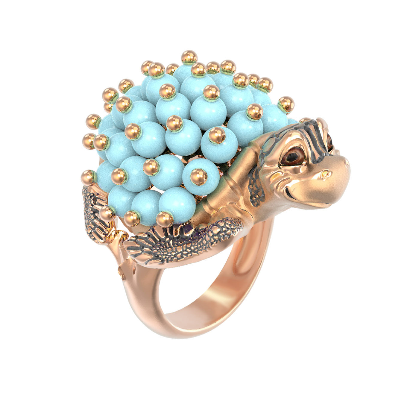 Кольцо из золота c эмалью и бирюзой
