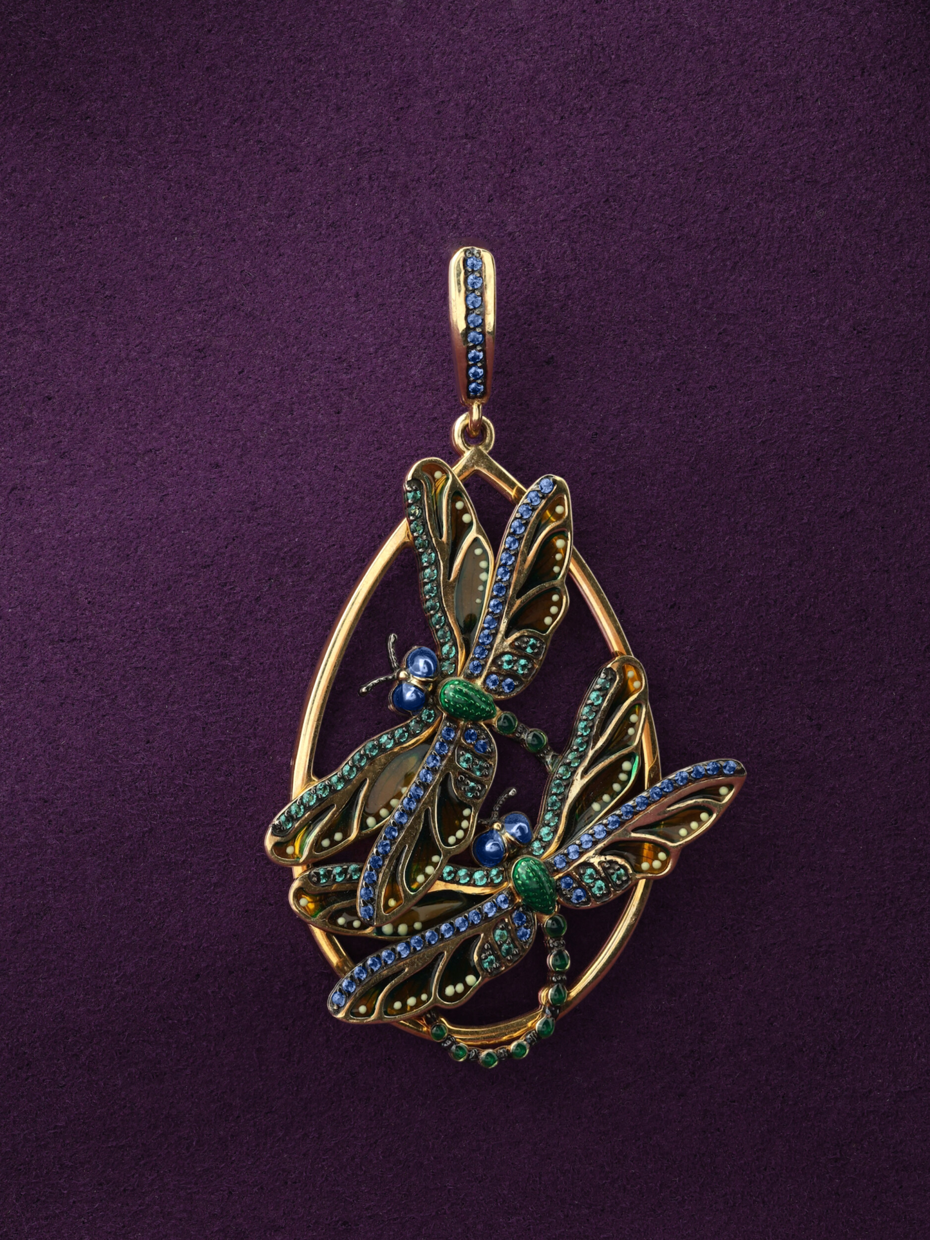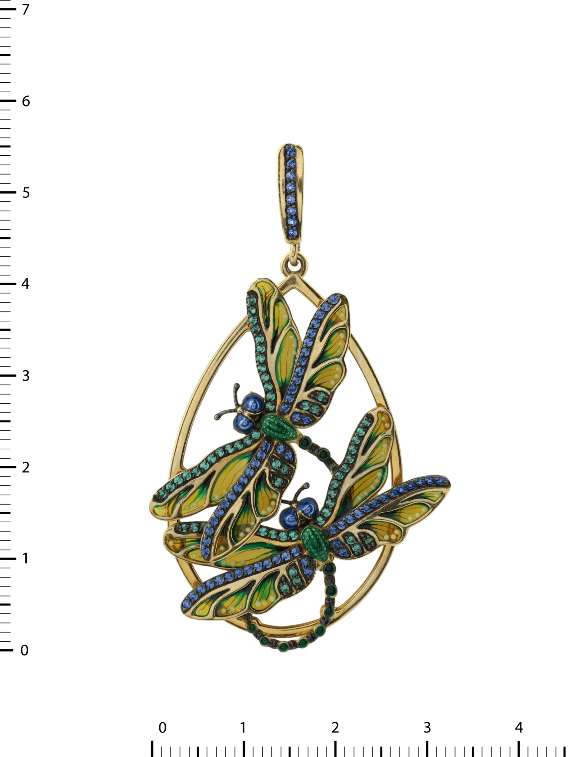 Подвеска из лимонного золота c сапфиром, изумрудом и эмалью