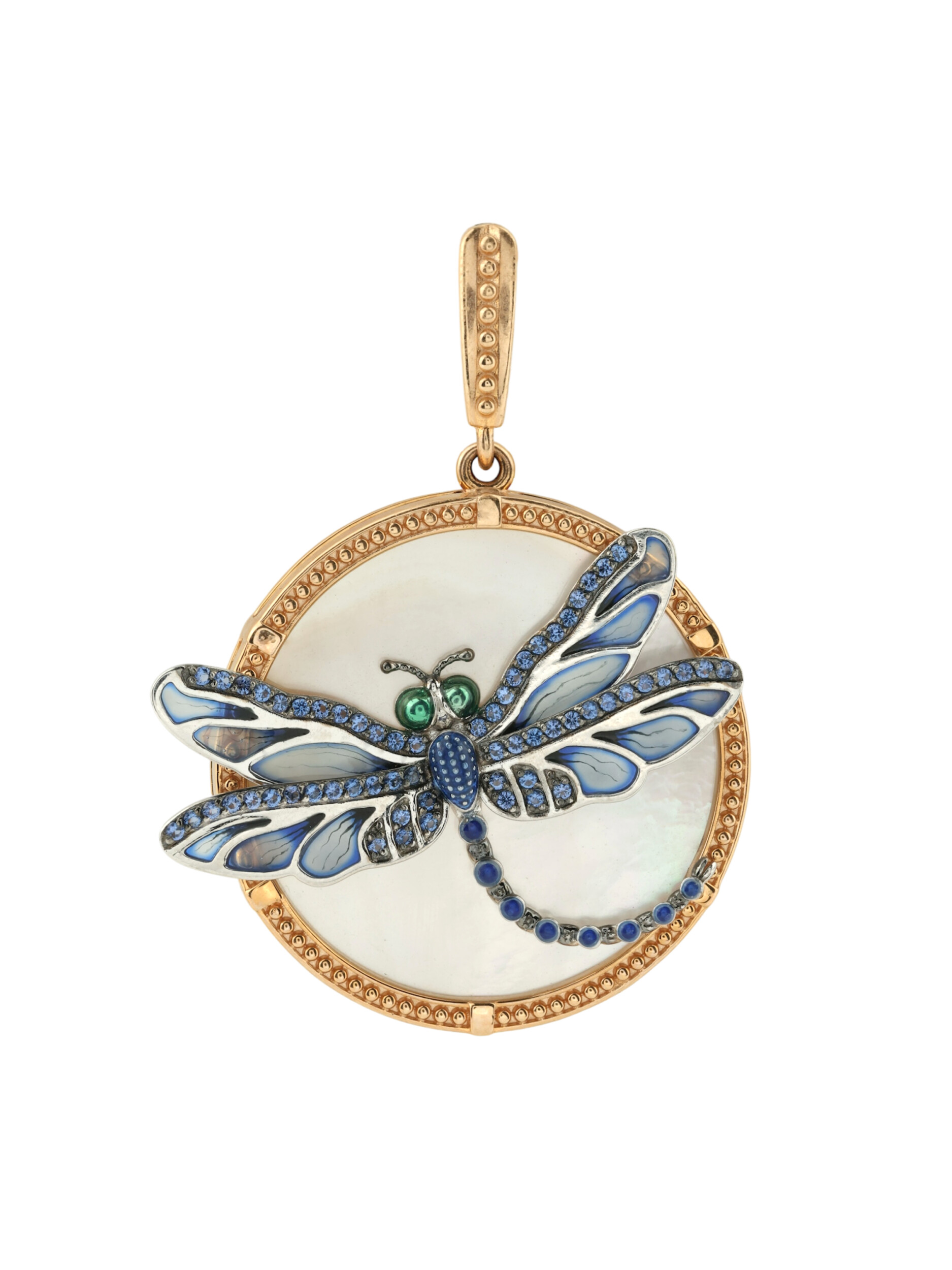 Подвеска из золота c сапфиром, эмалью и перламутром
