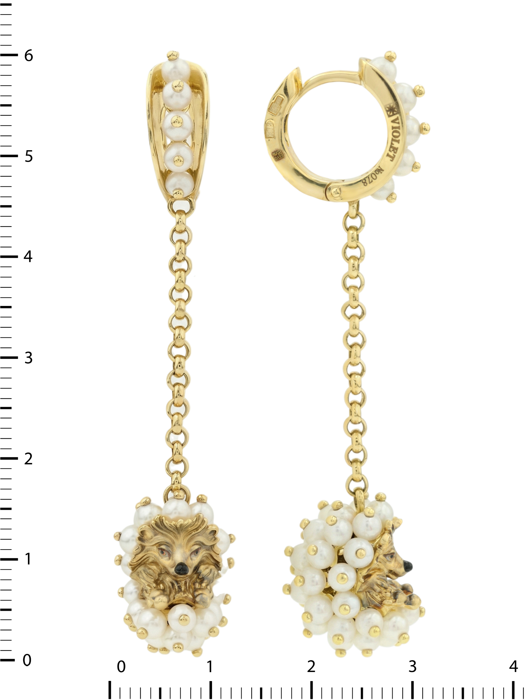 Серьги из лимонного золота c эмалью и жемчугом