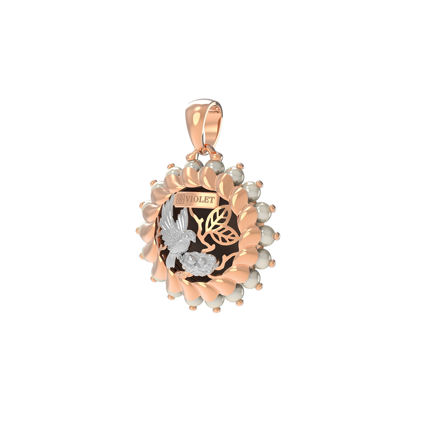 Подвеска из золота c эмалью и жемчугом